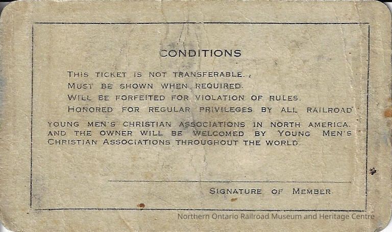 Membership card for the Young Men's Christian Association's Railroad Department.Context