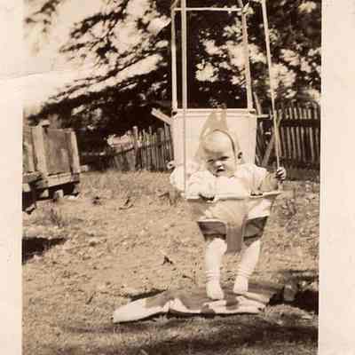 Baby Cecil J Wilber in outside bouncer 1940Photograph Details