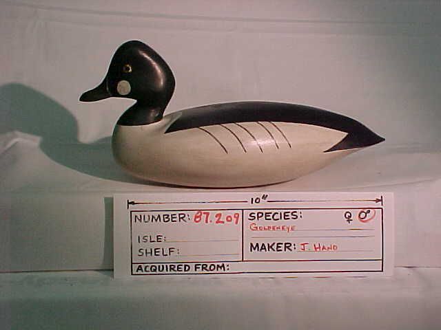 Glass eyes, head on shelf, 2 piece holow cedar, inletted weight, (round), label 209, 01032D, stamped 10132D, J. HandCollection