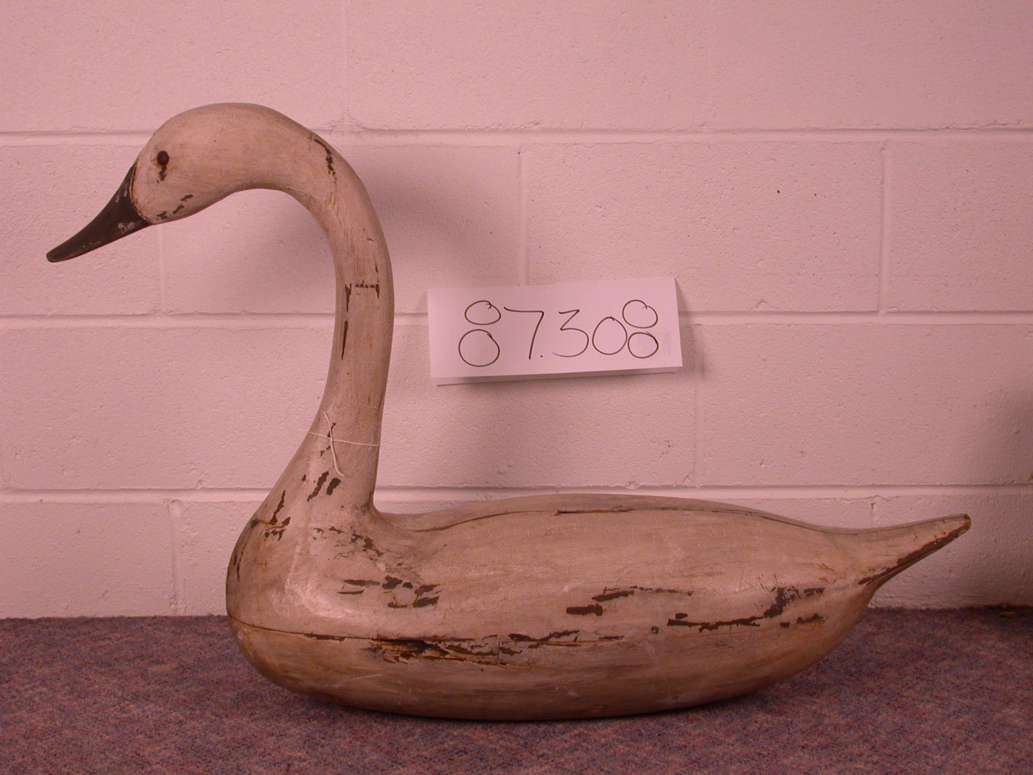 5 piece body doweled together, 2 piece head and neck, tack eyes, keel missing, stamped 00988, carved MS