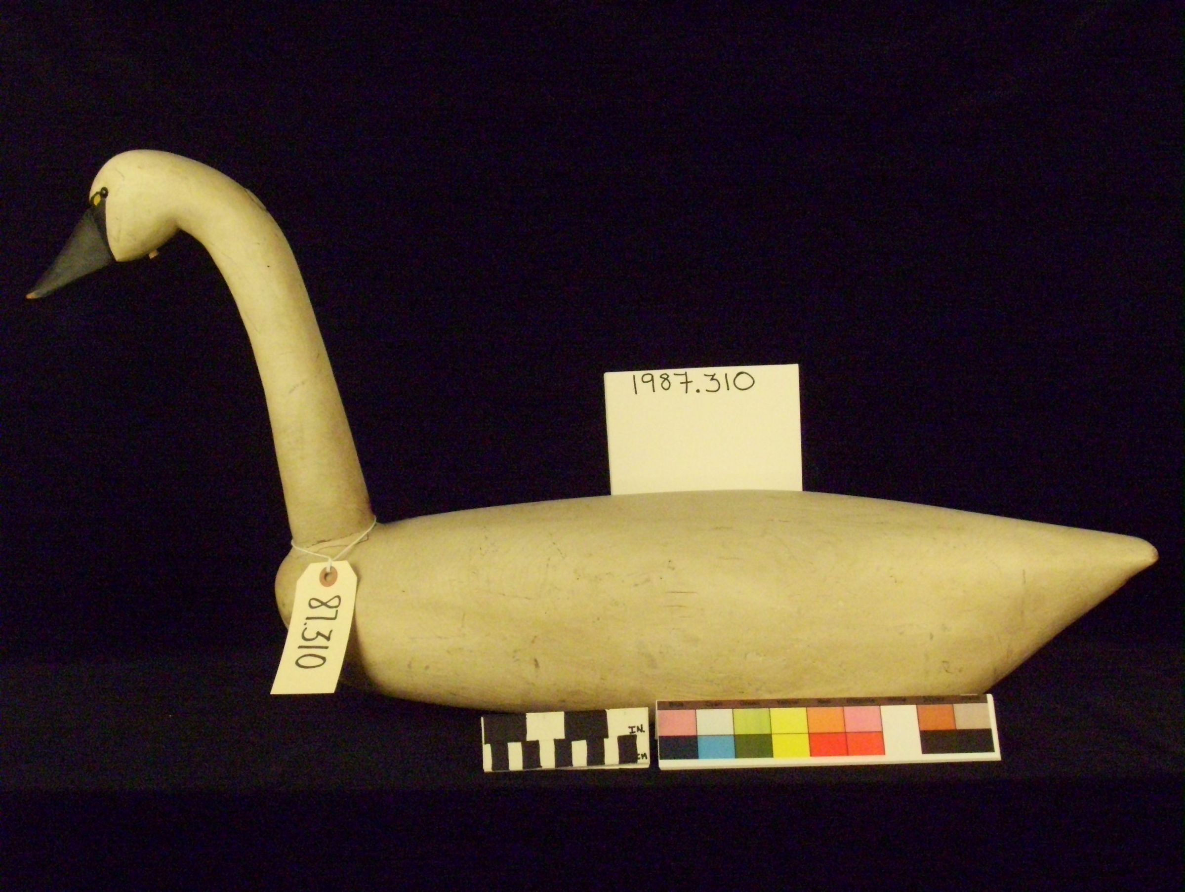 Weight suspended below decoy by wire attached to bottom, screw eye, glass, eyes, bill doweled to head, neck doweled to body, signed RH, Richardson, Castle Haven, stamped RHR, carved J.V. stamped 973, written - R13, solid body, original paint., small crack down backCollection