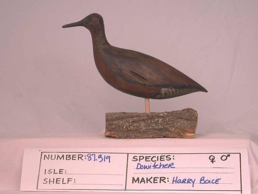 Original paint, painted eyes, inletted bill, solid body, several shot holes, hole in bottom for stick; labeled J11, written S149; 6.25 x 9 x 2 in.