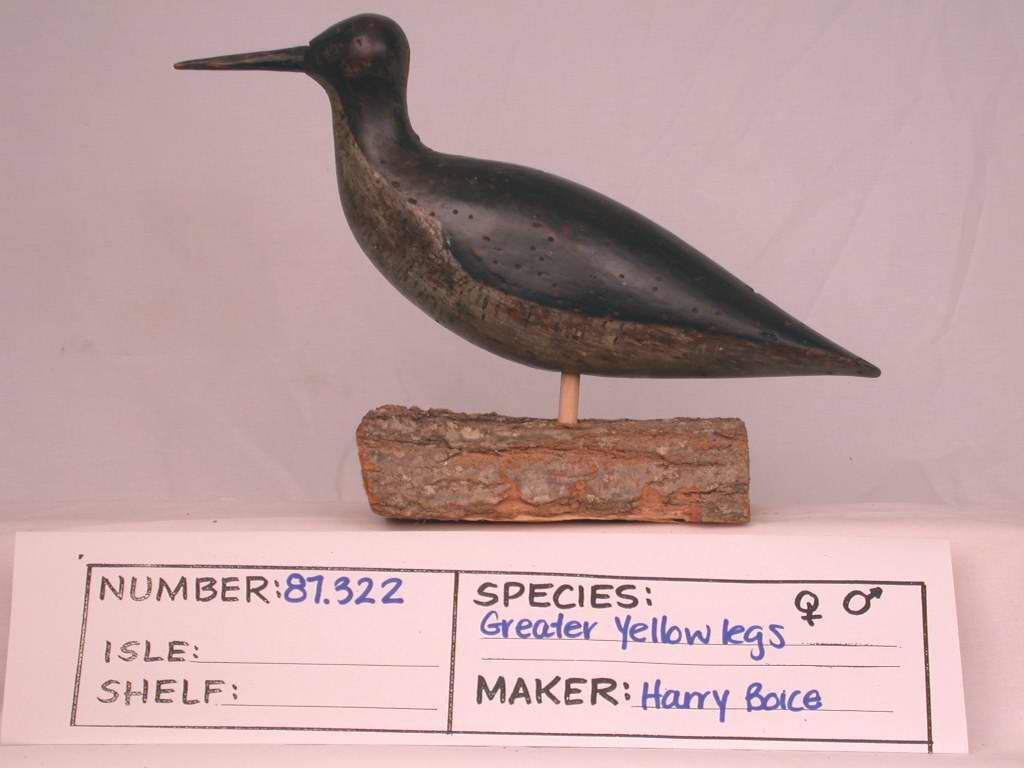 Carved eyes, inletted bill, many shot holes, solid body, hole in bottom for stick, written J12, S213Collection