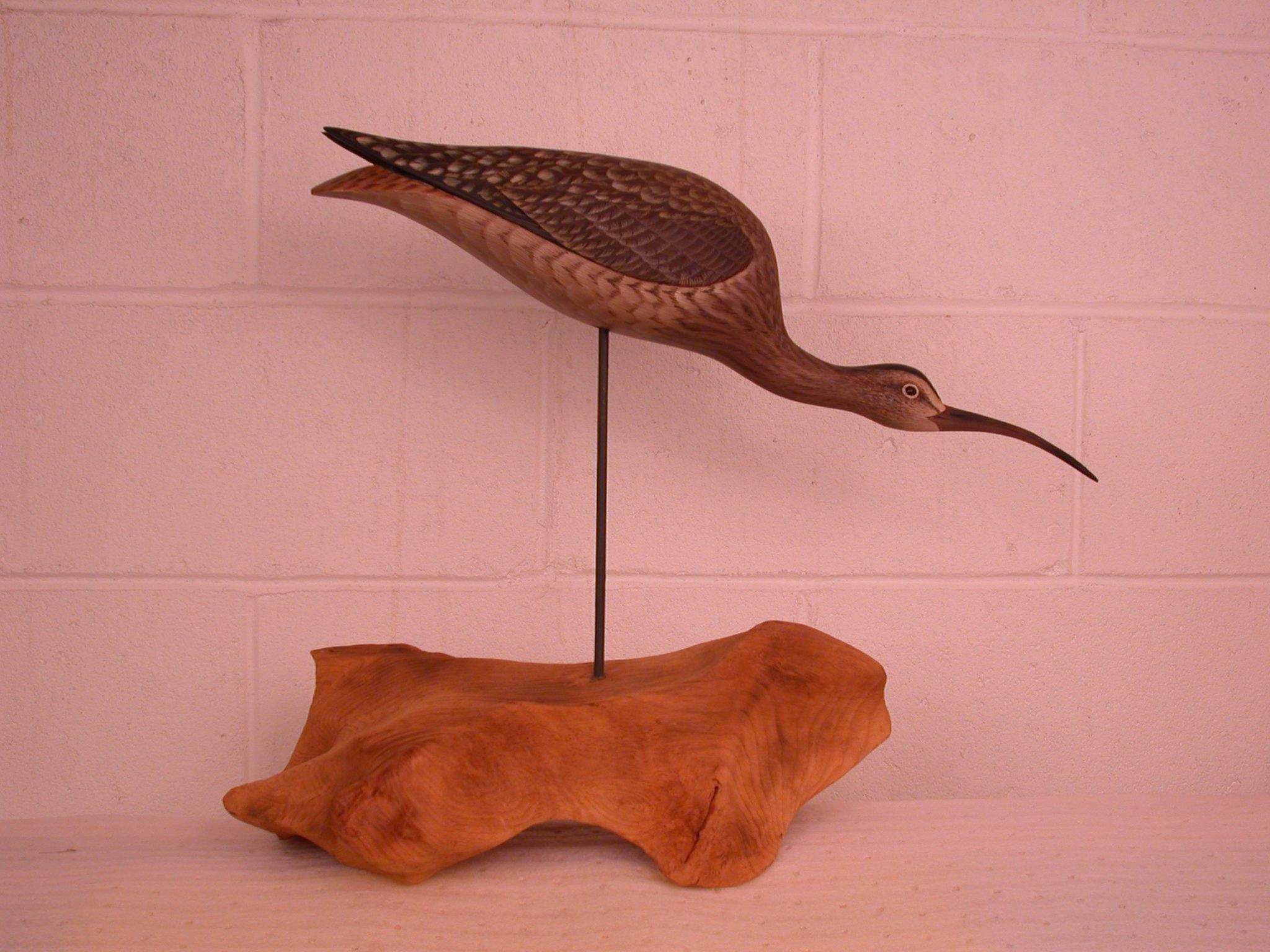 Feeding pose, glass eyes, wings carved in relief, split tail and wing tips, very detailed painting, signed D. Rhodes, Absecon, NJ 1997