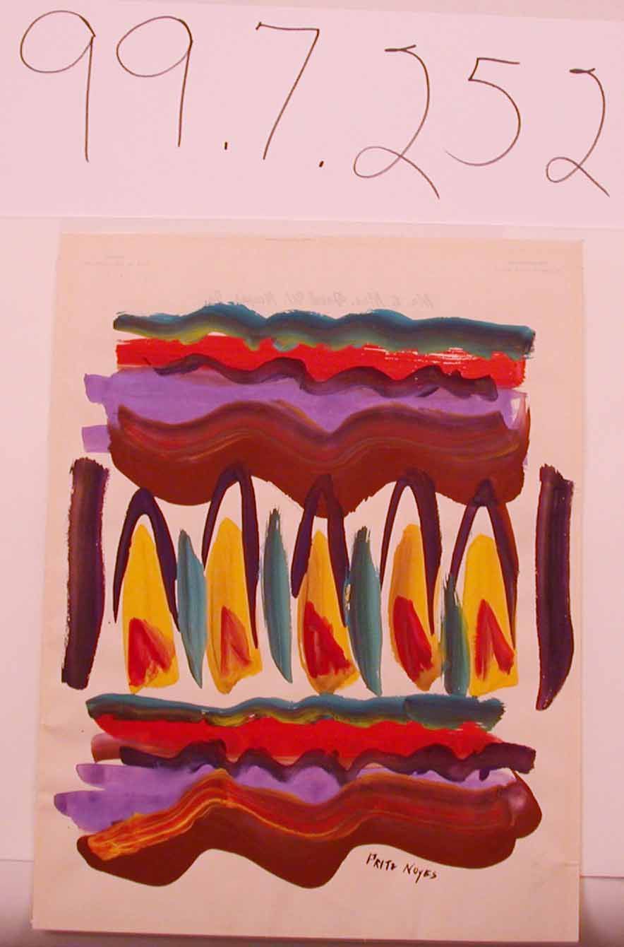 On back of letterhead, yellow flame like image in center, brown, red, purple and blue horizontal waves.