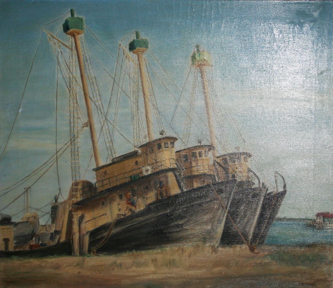 Three bunker boats on a beach