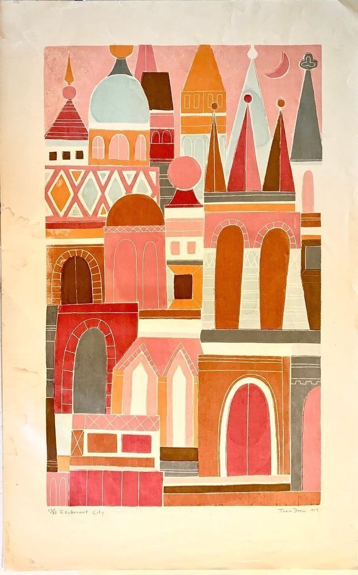 Multicolored: light blue, dark blue, light pink, dark pink, orange, browns