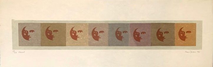 Reapting contoured face print on various colored backgrounds; green, tan, blue, and purple
