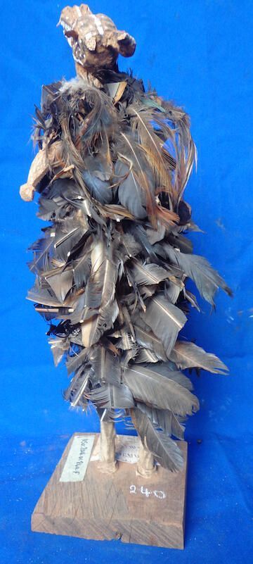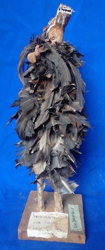 Miniature of the tallest masquerade in the kingdom. It walks on stilts and towers above the crowd. Kingaayasi comes out to commemorate the deaths of important title holders and on other ceremonial occasions.Artwork Details