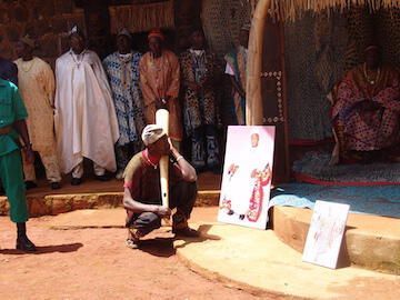 It is a side-blown trumpet used to get the attention of the population especially when the Fon is to appear and speakDimensions
