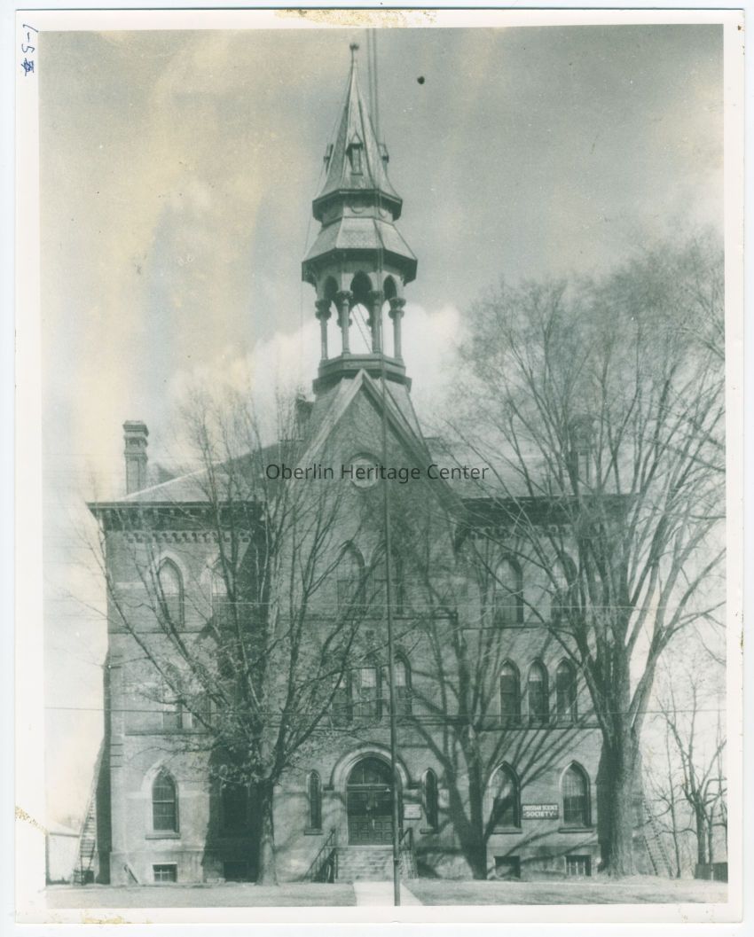Black and white photograph of Westervelt Hall. The trees that surround the hall are without leaves.