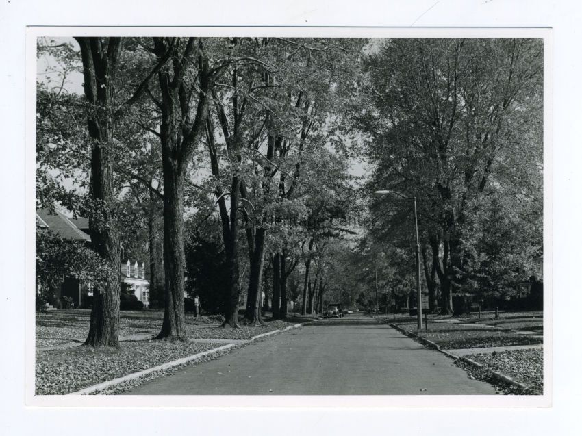 One black and white photographic print of Oak Street in Oberlin. Houses can be seen on the left side of the image.Photograph Details