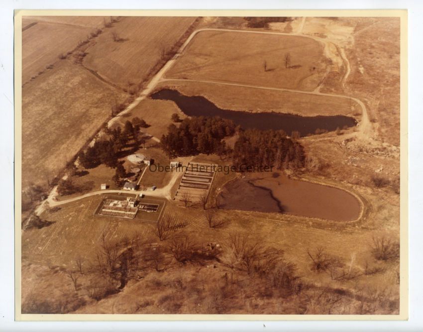 One color photographic print of an aerial view of the Oberlin Wastewater facilities and surrounding area.Photograph Details
