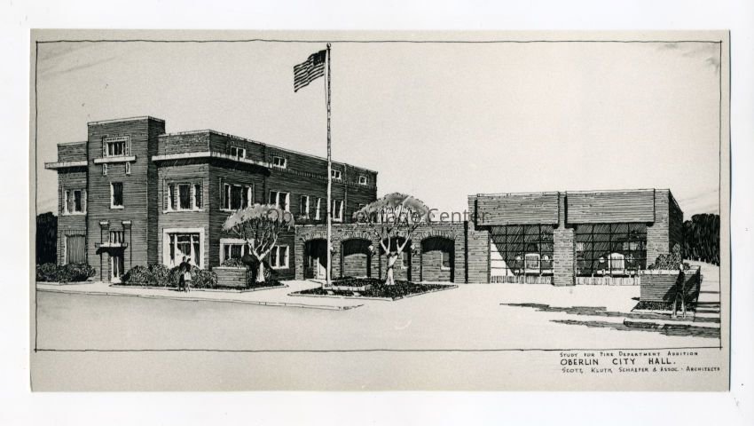 One black and white photographic print of an architectural sketch for a proposed addition to the Oberlin City Hall.Photograph Details