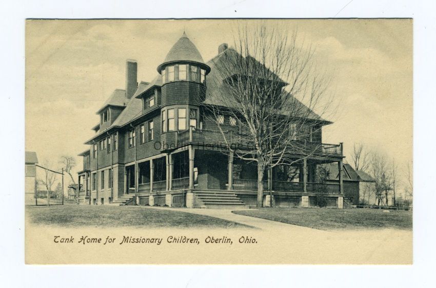 One black and white photographic postcard of the Tank Home for Missionary Children on the Oberlin College campus. The back of the postcard is blank.Photograph Details
