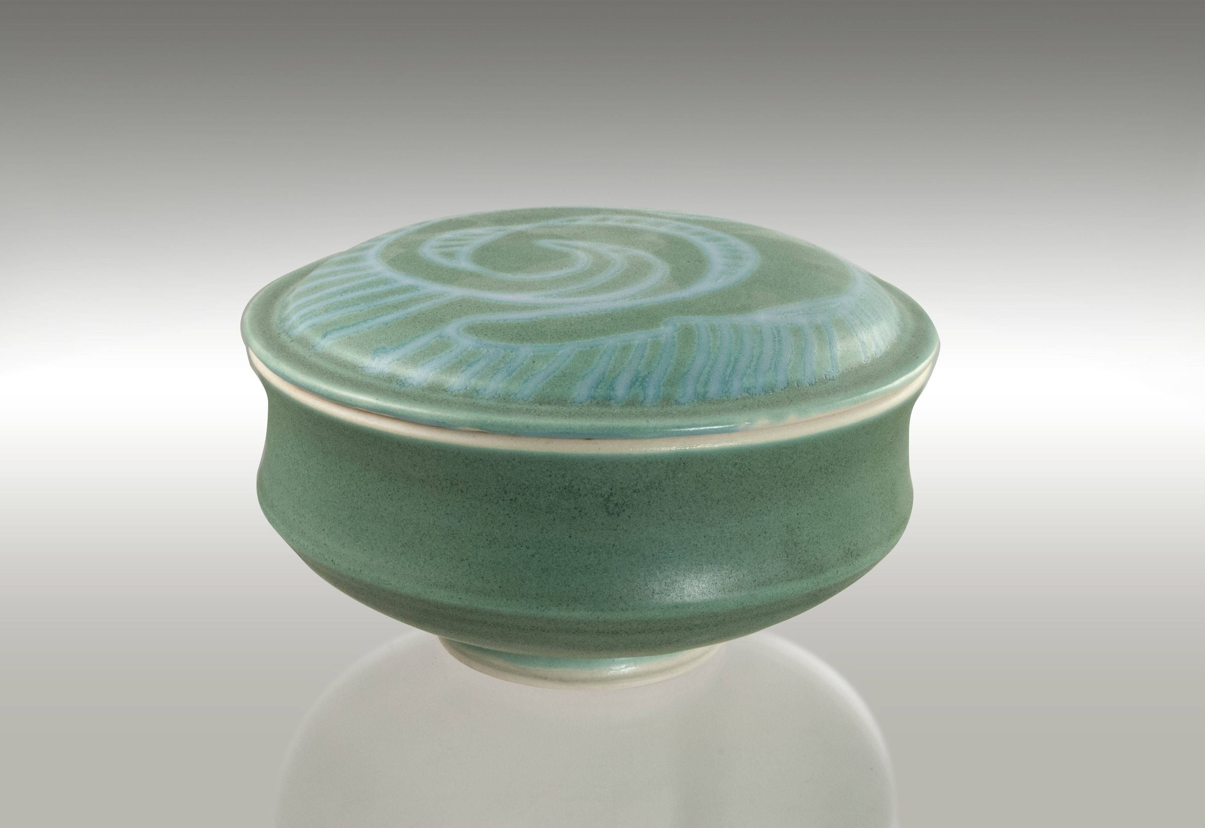 Porcelain Jar with Magnesia matt green glaze with lavender blue inlay