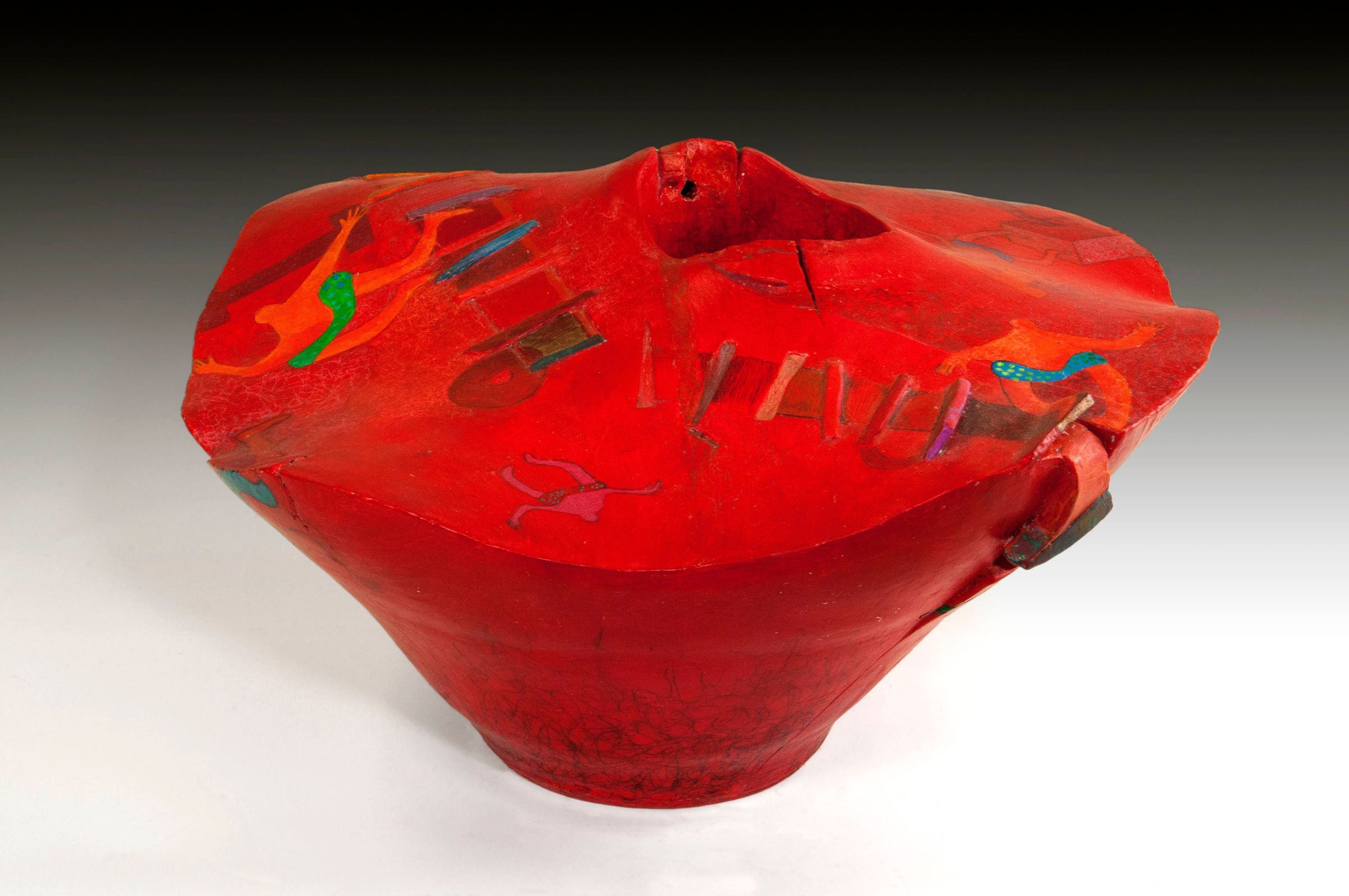 Earthenware, underglazes, wax, acrylic paint