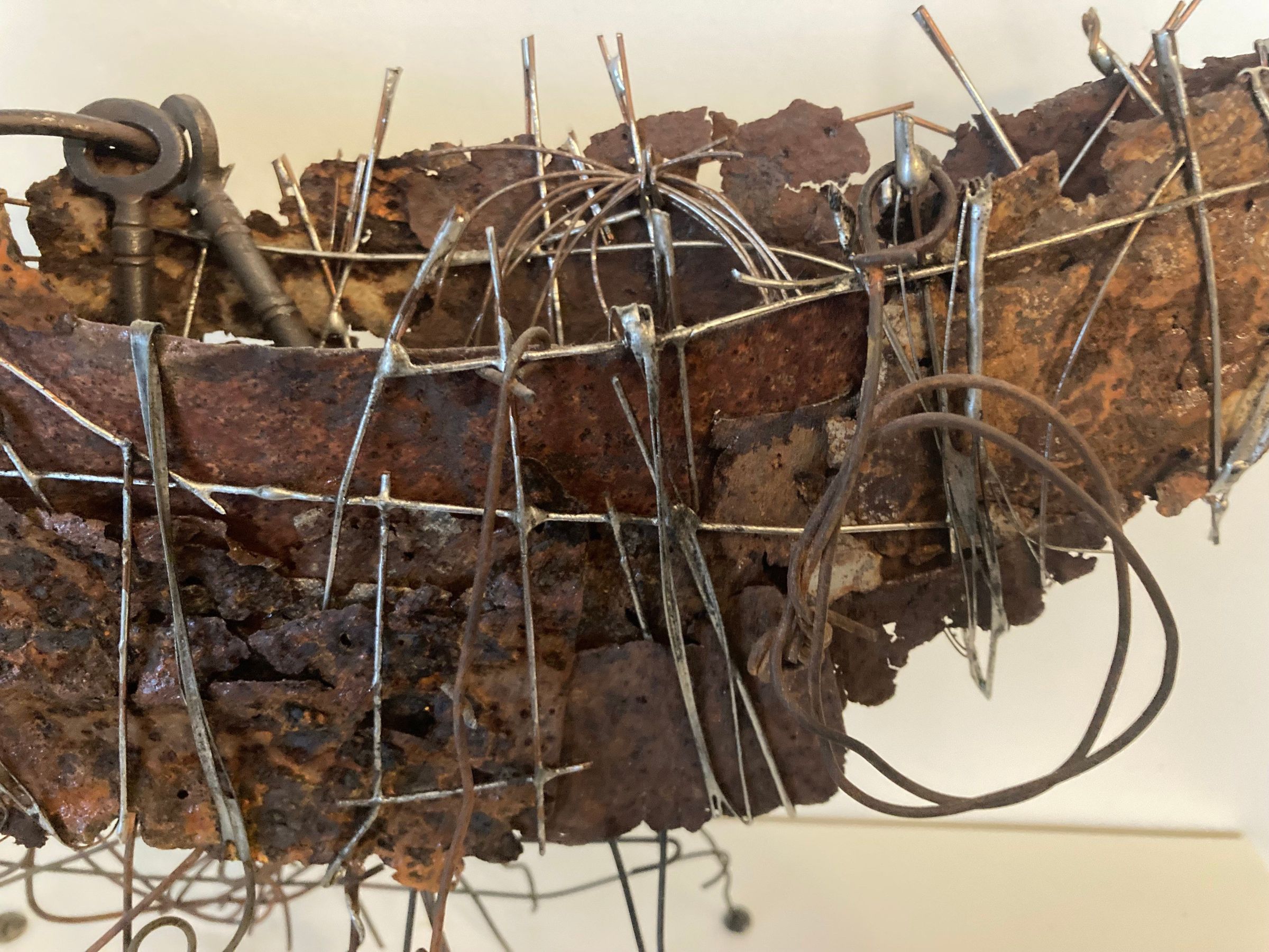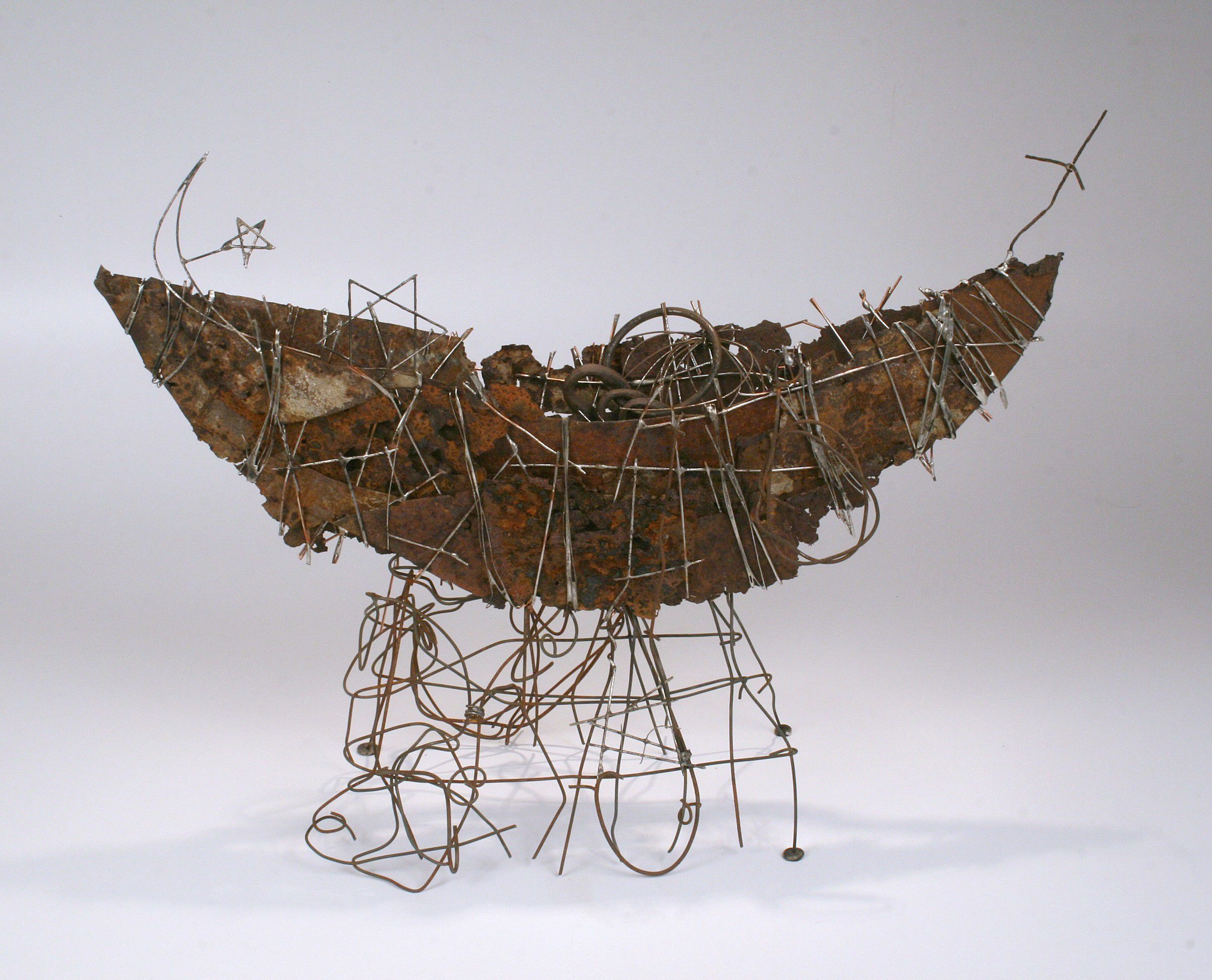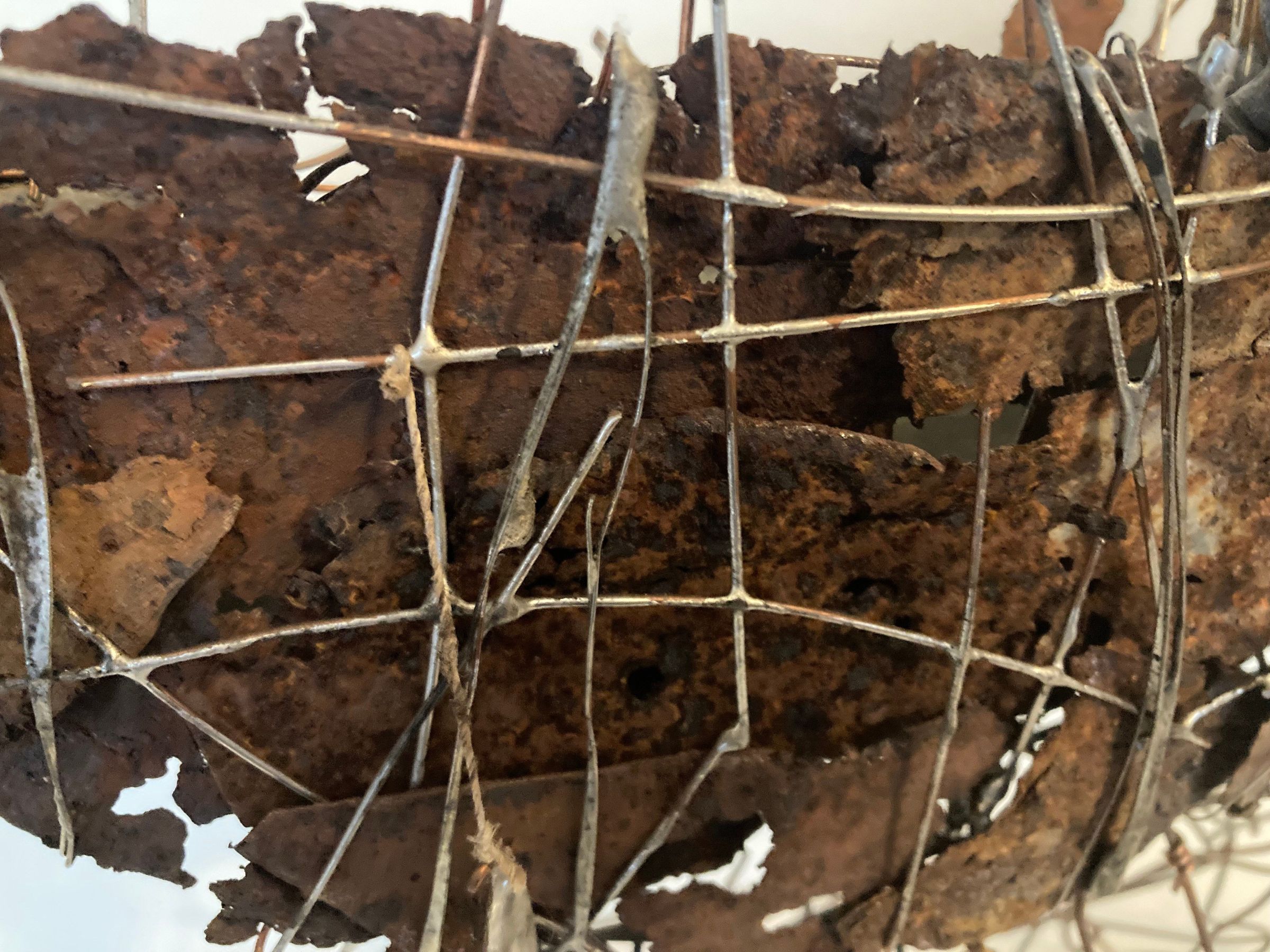 Copper wire, solder, rusted metal, found objects, chemical patina