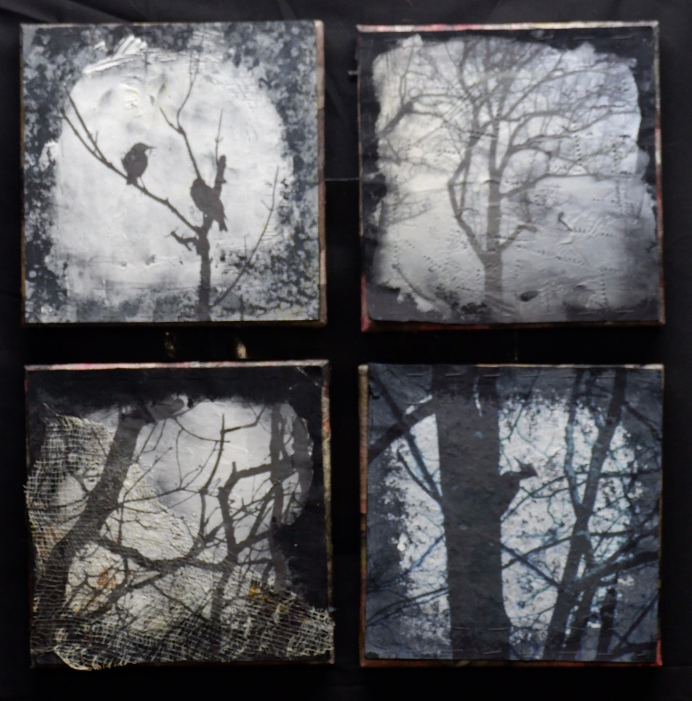 Stabilizer backing, gesso, Inkaid, felt, canvas, tissue paper, paint