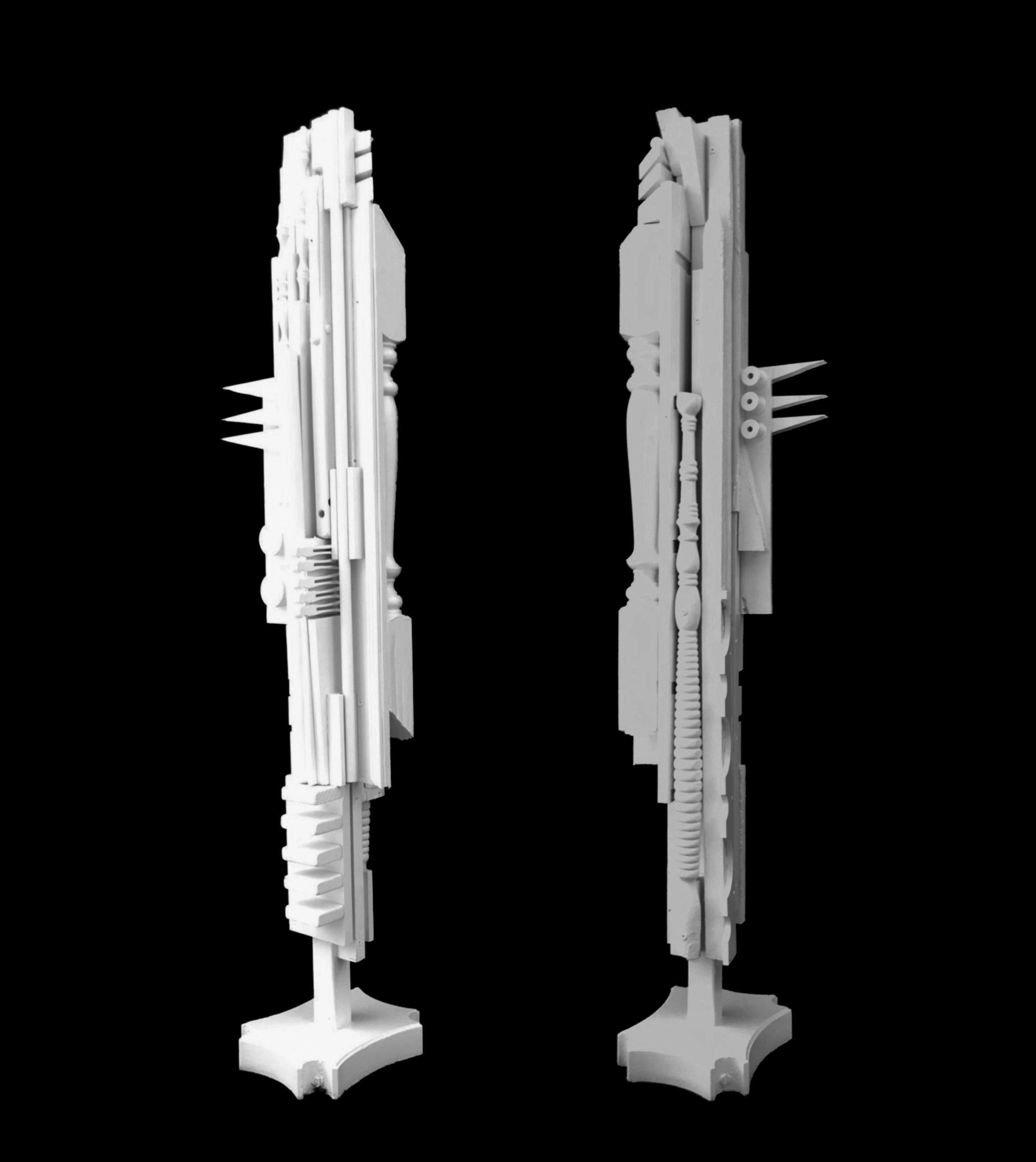 Found wooden objects, acrylic paint