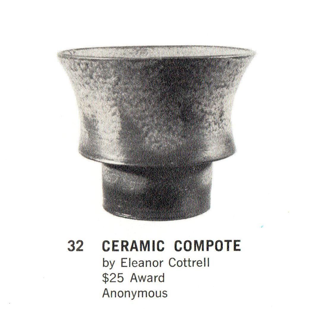 Eleanor Cottrell’s artistic pursuits included sculpture, ceramics and goldsmithing, as well as degrees from the University of Chicago and Columbia. She taught at OSU school of Art, Columbus Arts and Crafts Center and the Institute of San Miguel De Allende and was an active member of the Worthington Area Art League, Women's Art Guild of Central Ohio and the Columbus Art League.