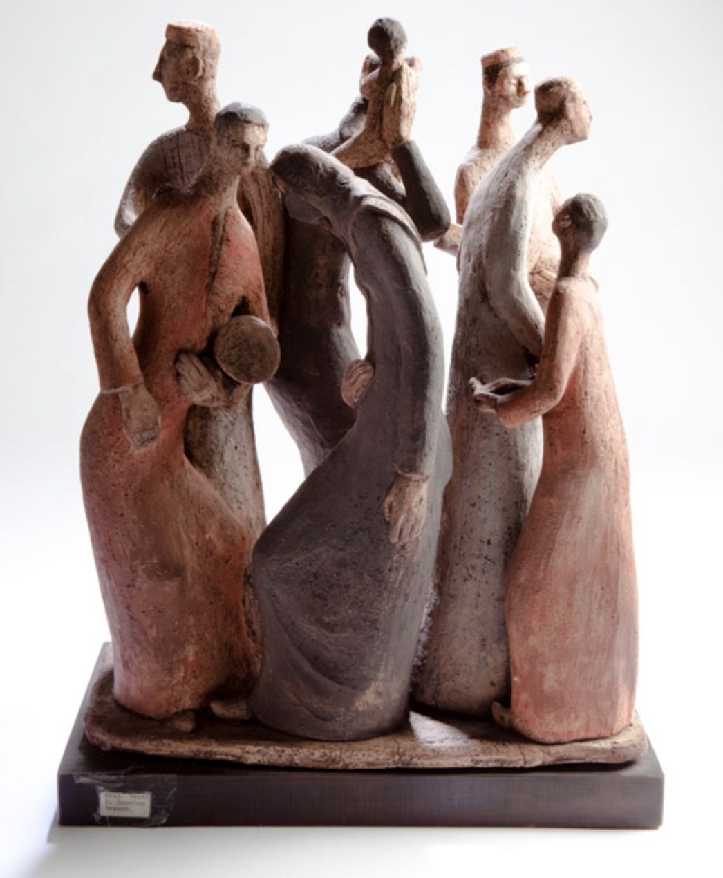 JoeAnn Cousino majored in art at the University of Toledo. She was a founding member and later a president of the Toledo Potters' Guild. She concentrated on sculpture (ceramic and bronze) but also did interior decoration, fashion design, jewelry, ceramics, painting, and architecture. Her sculptures are in many public and private spaces in northwest Ohio as well as in other states and countries. Notably, her “Woman with the Birds” sculpture is displayed at the Toledo Botanical Garden.