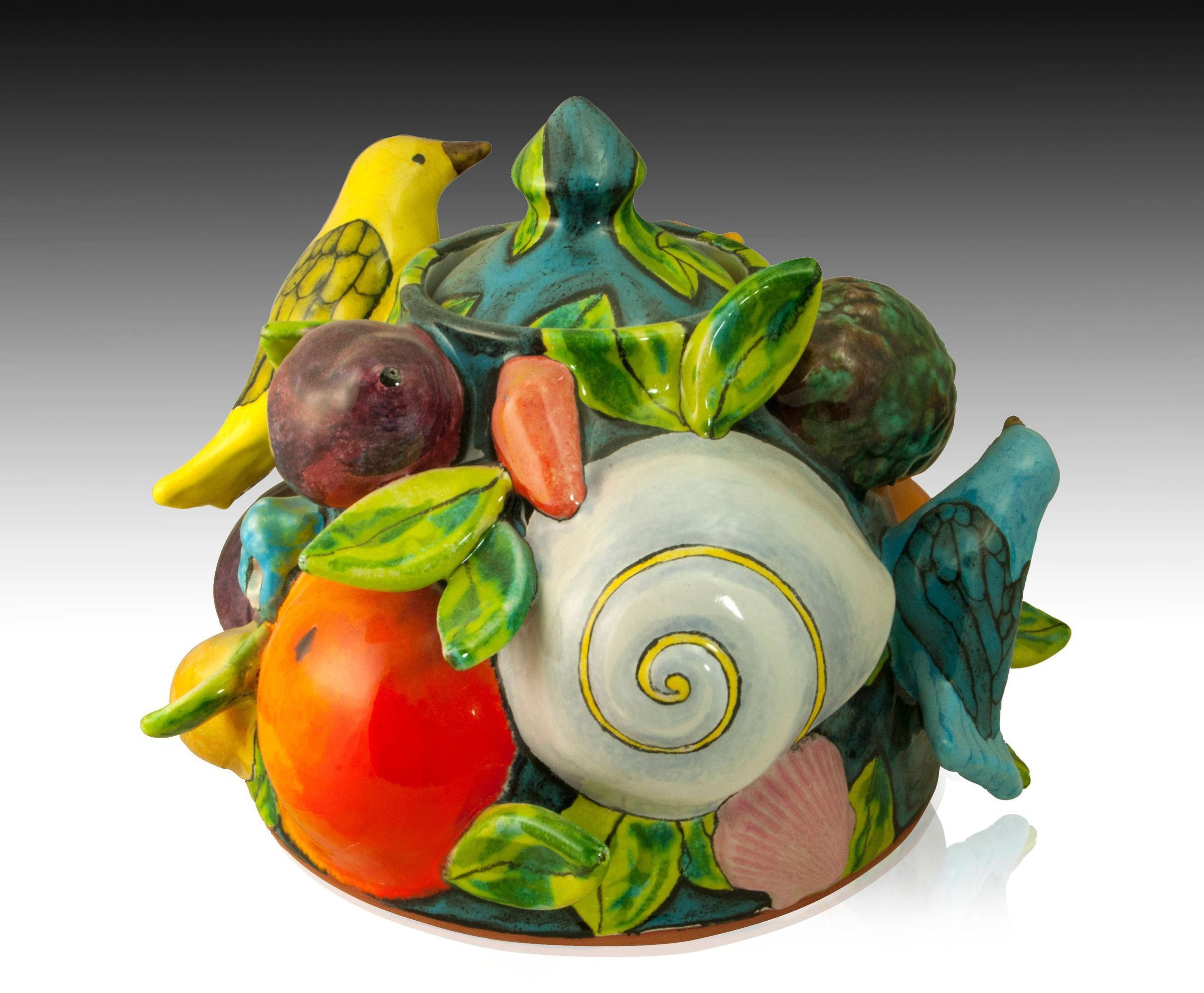 Covered Jar with Birds, Seashells and Fruit