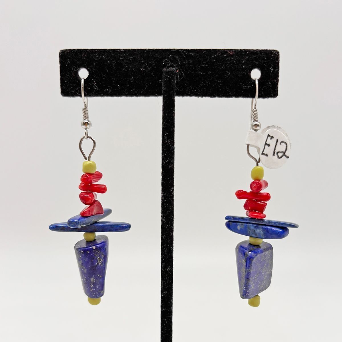E12: Lapis and Red Coral Dangle Earrings