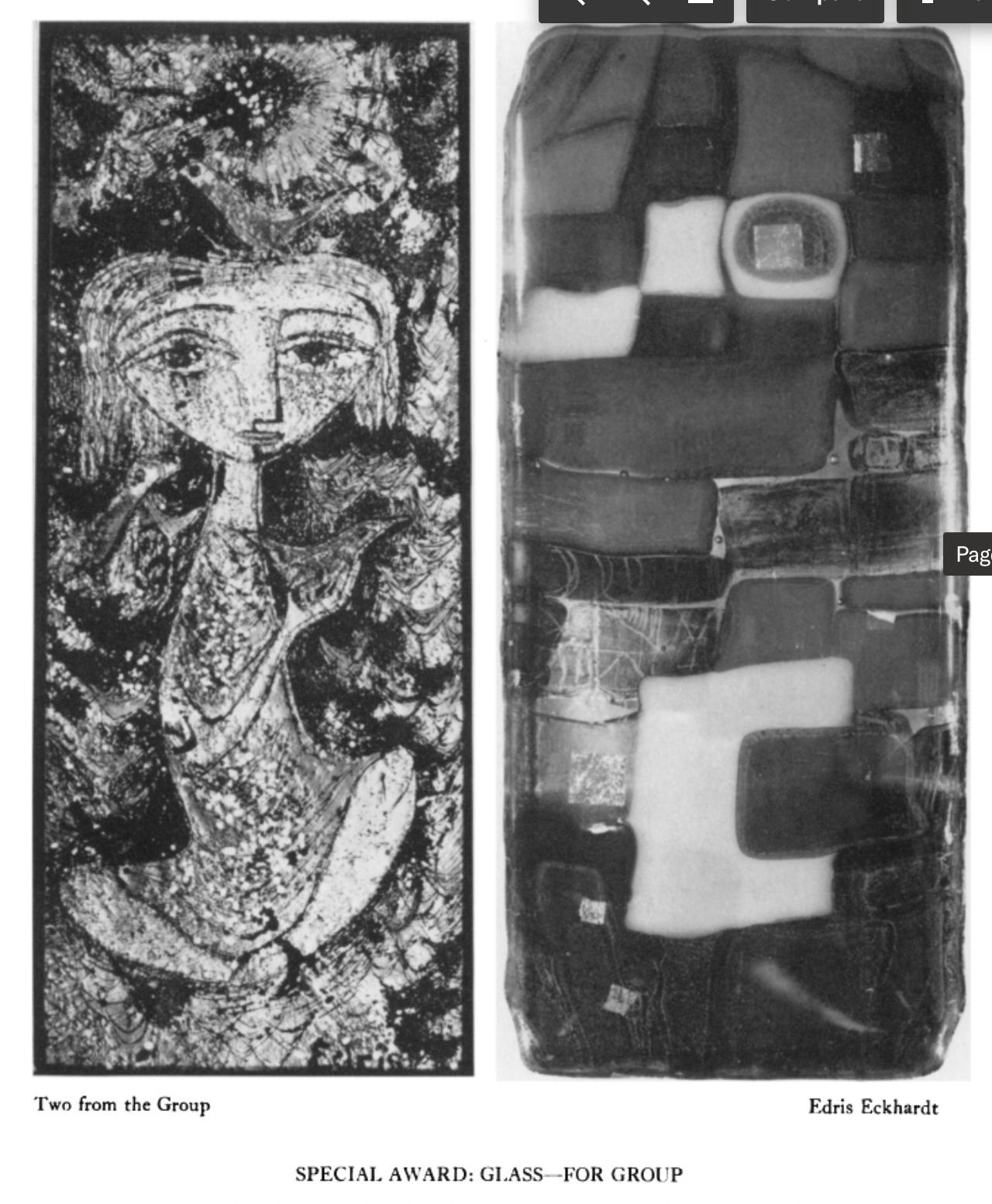 Edris Eckhardt studied at the Cleveland Institute of Art and taught ceramics there for almost three decades. Known both nationally and internationally for her work in bronze, glass and ceramics, Eckhart’s patrons include Eleanor Roosevelt, John F. Kennedy, and Queen Elizabeth II. She has exhibited work at the 1937 World’s Fair, served as the regional supervisor of sculpture for the WPA, written numerous articles for Ceramics Monthly and been awarded two Guggenheim fellowships, among many other accolades.
