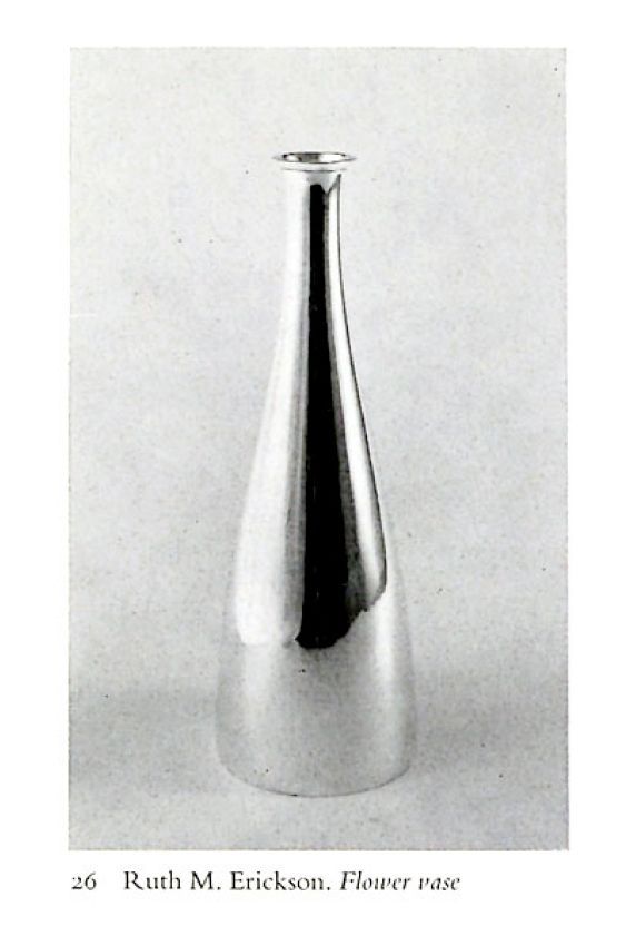 Ruth Erickson is known for her works in silver and enamel. She studied at Vesper George School of Art in Boston and apprenticed as a silversmith in Stockholm, Sweden. She has exhibited work in 27 annual May Shows at the Cleveland Museum of Art, as well as the Museum of Contemporary Craft, Kent State University and the Mansfield Art Center.