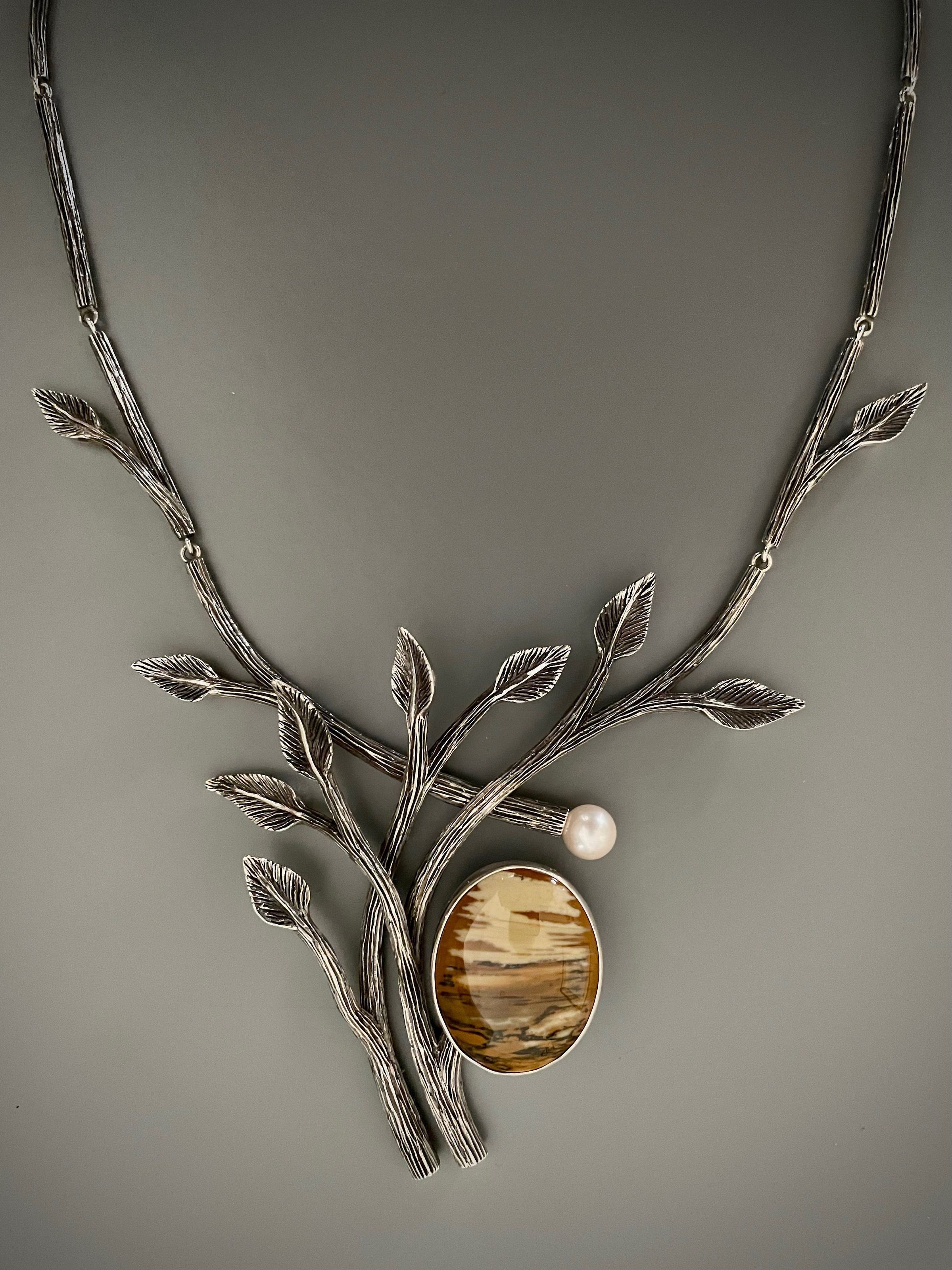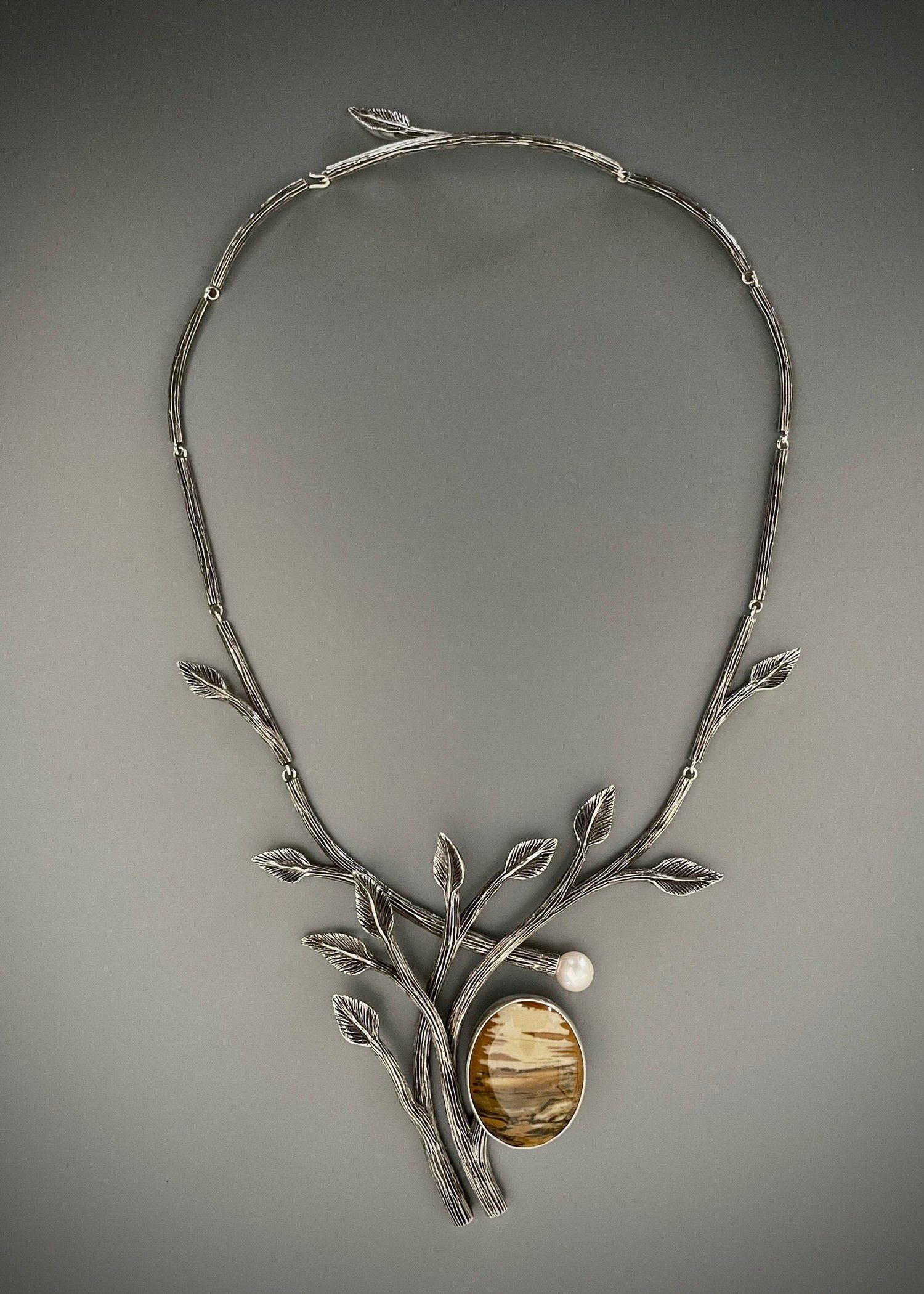 Sterling silver, pearl, jasper