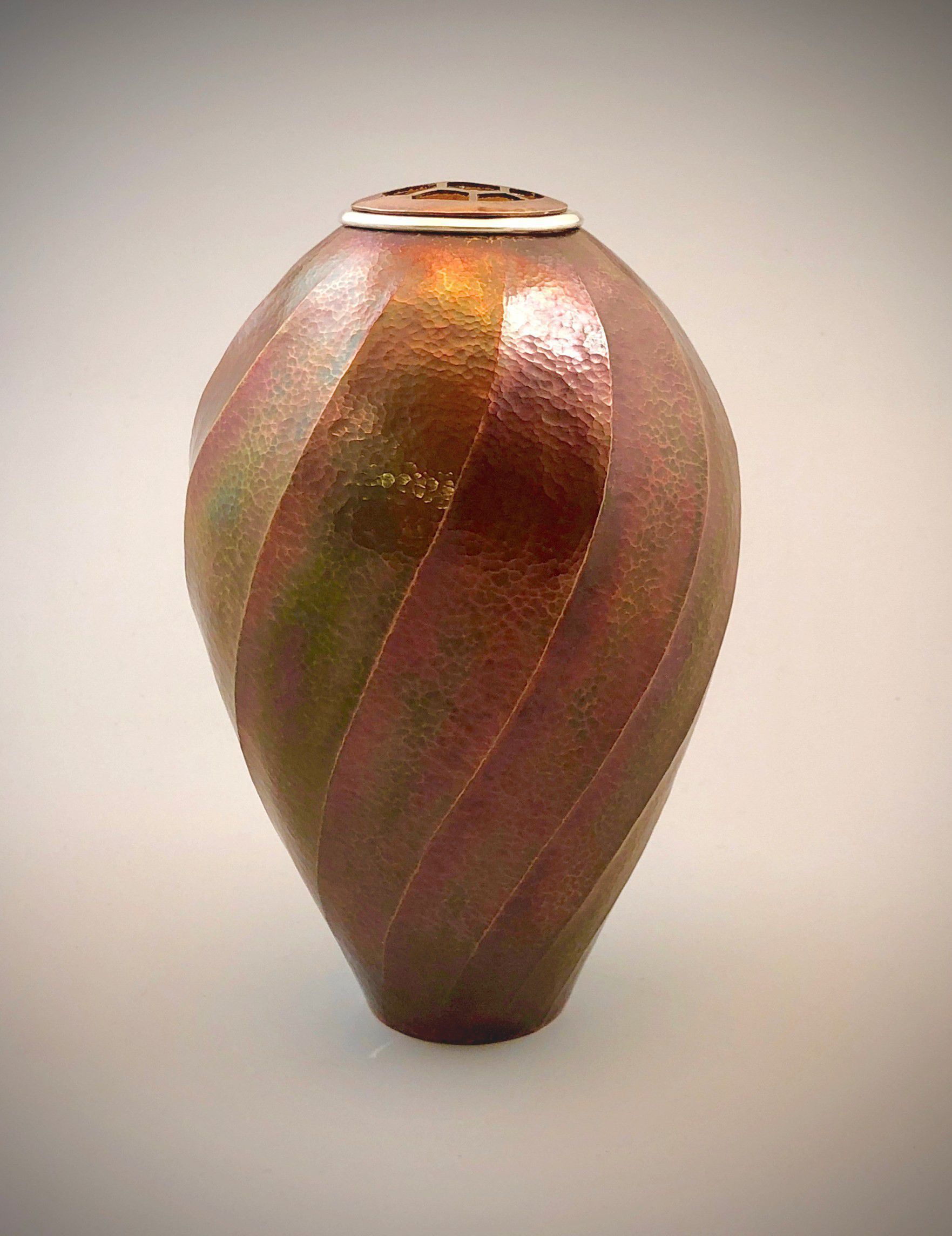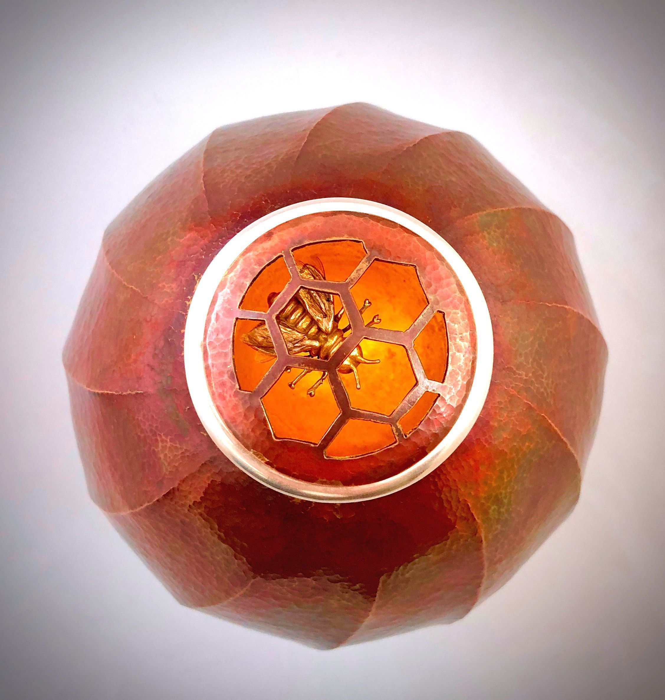 Raised copper, liver of sulfur, silver, goldleaf, found object, bee wings