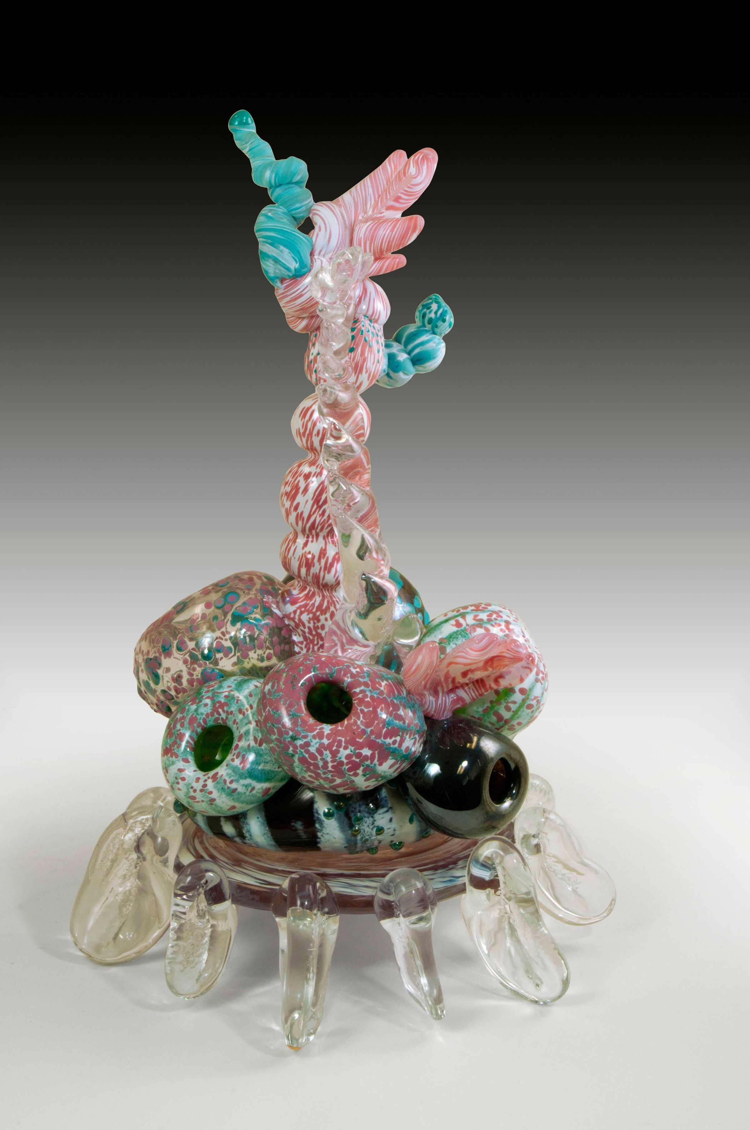 Hand-blown glass, sand-etching, lacquer
