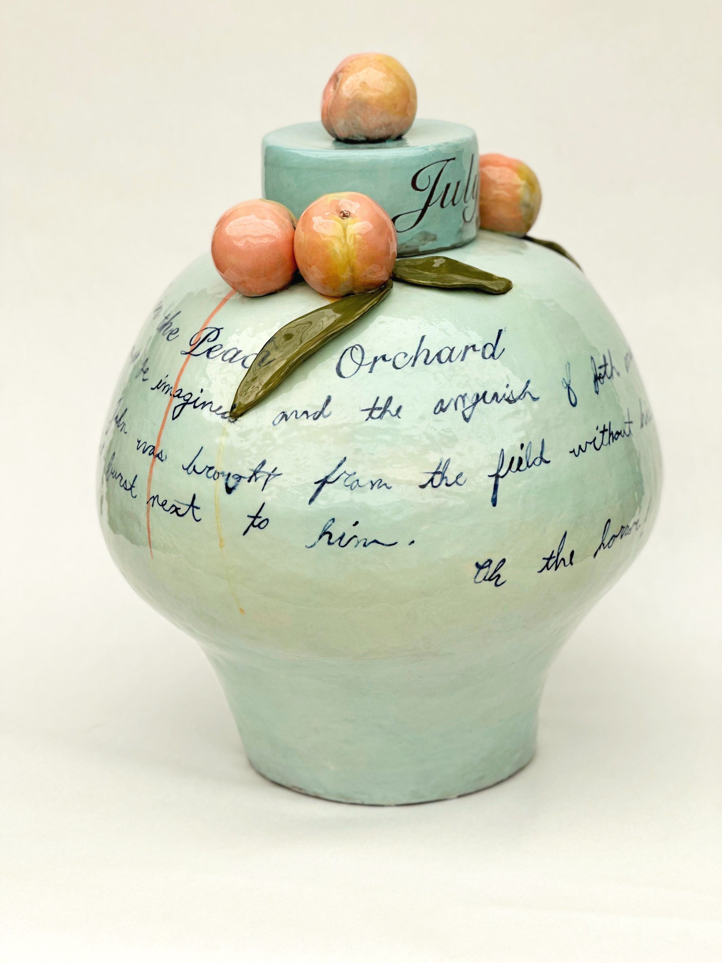 Stoneware, colored porcelain slips, print transfer