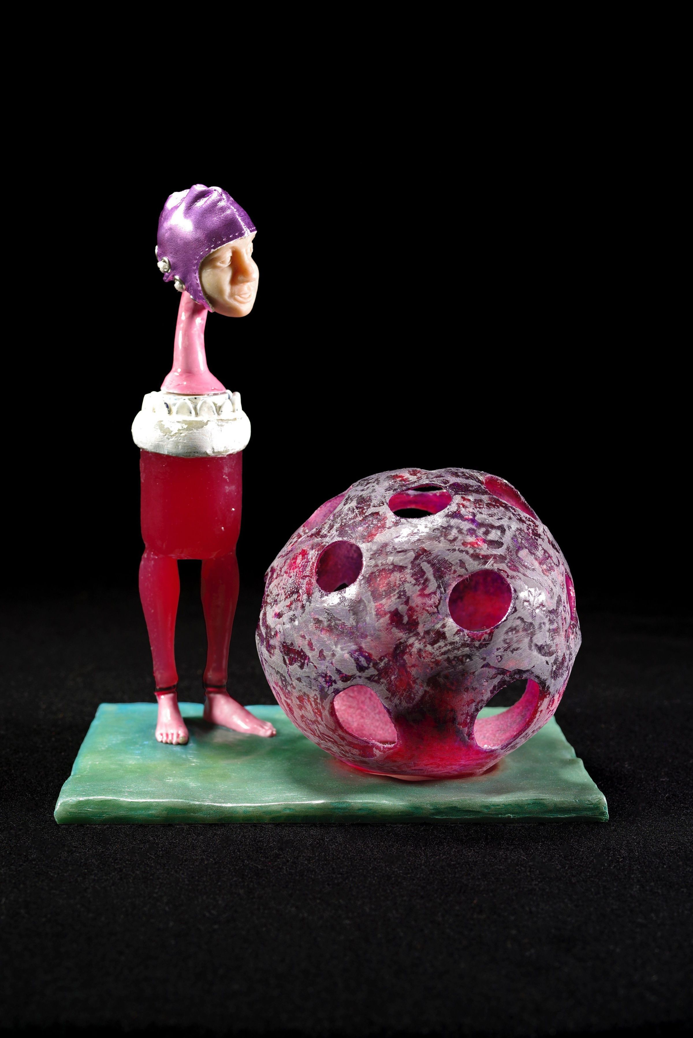 Hand-dyed felt, resin, vinyl, epoxy