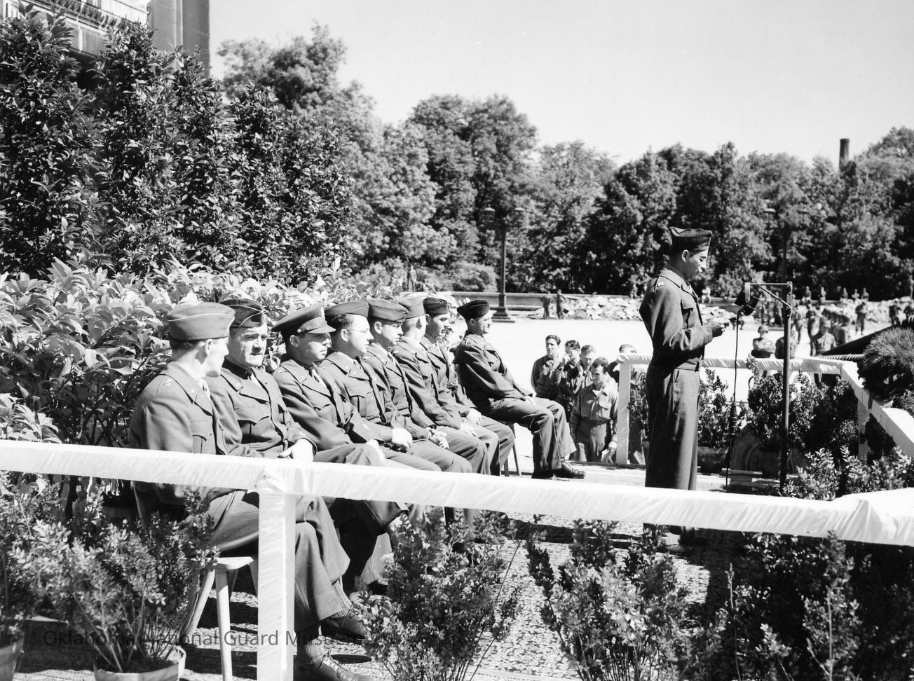 Arthur Schainhouse, 180th Infantry, reads scriptures during the Memorial Day service