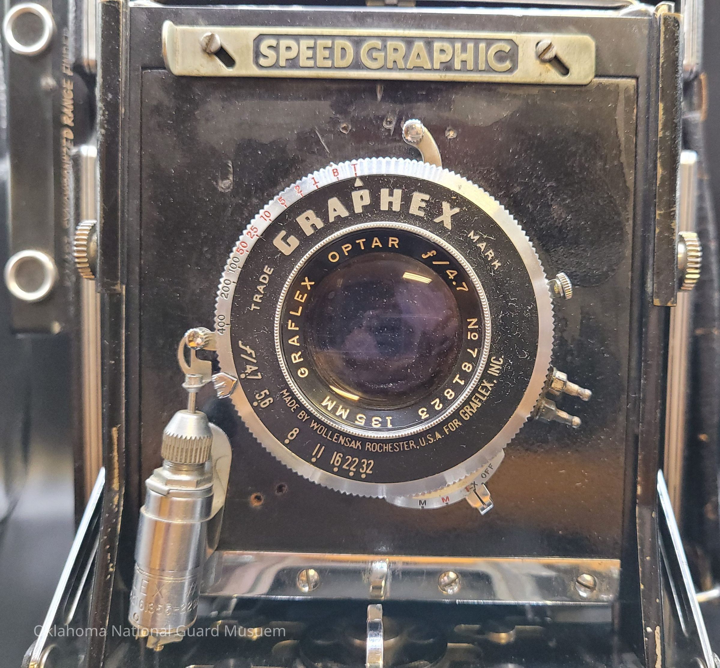 Graphlex Anniversary Speed Graphic used by Geroge Tapscott, 45th Division photographer, throughout World War Two. Most notably, Tapscott used this camera to photograph the Dachau Concentration Camp