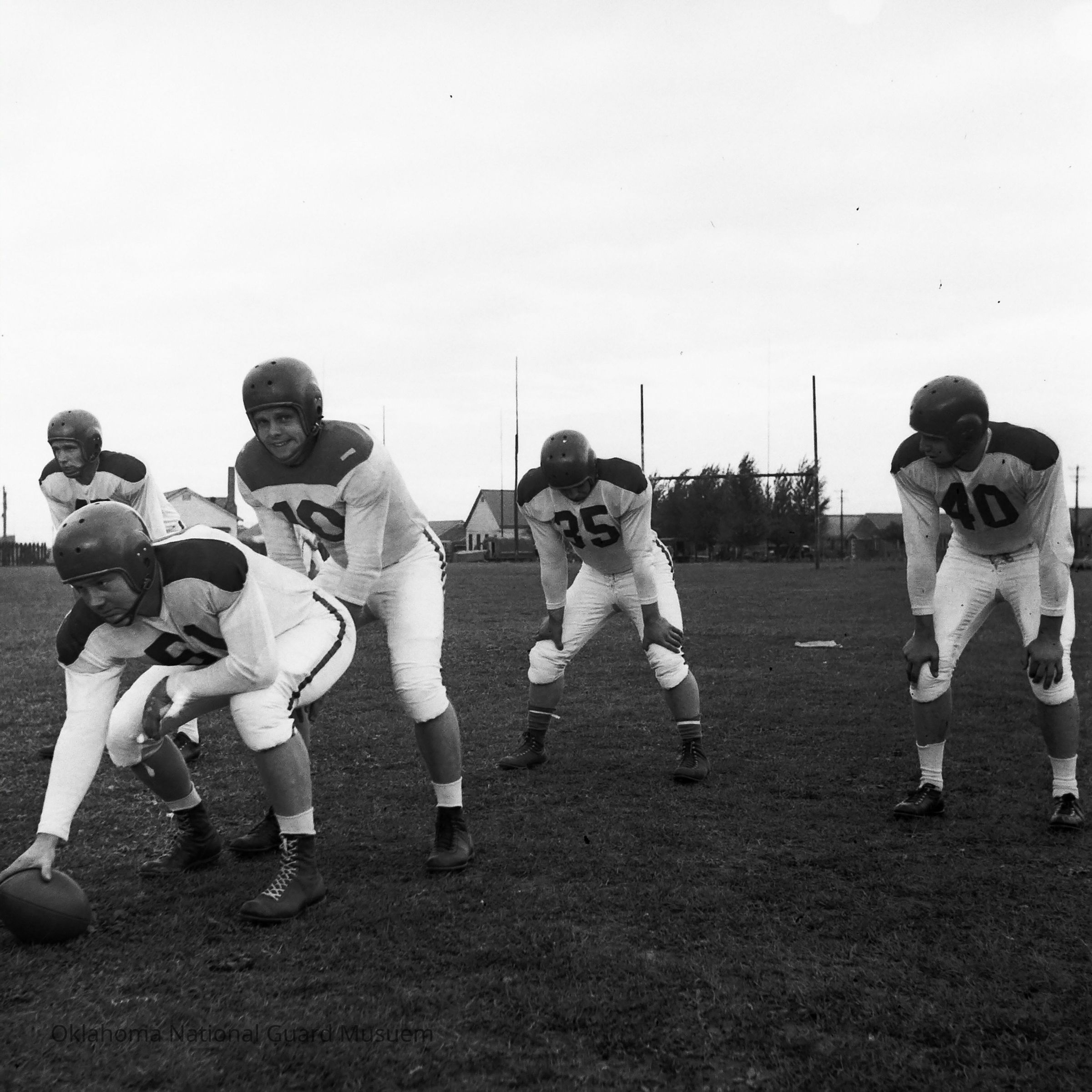 Negative of soldiers during football practice
