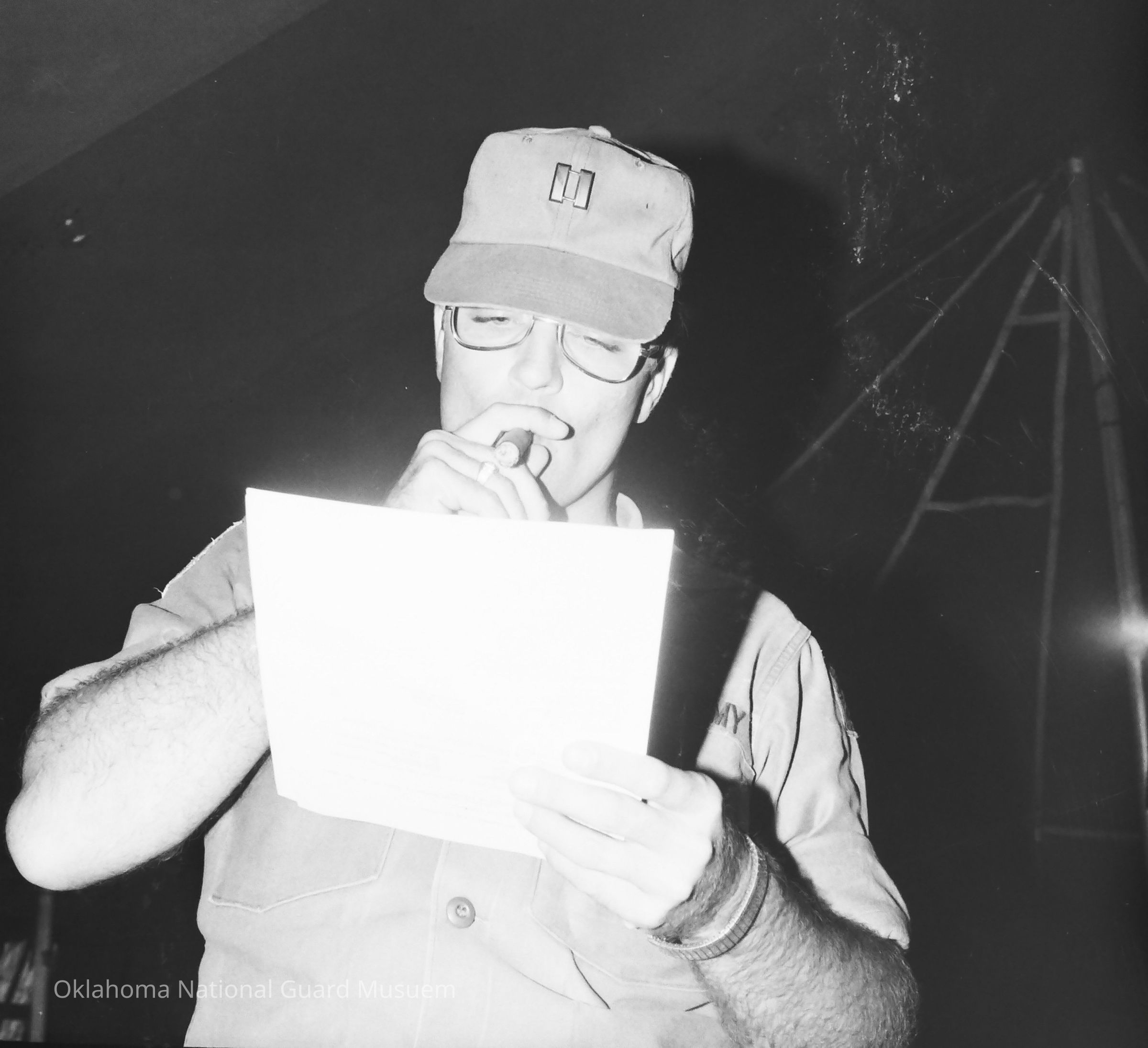 Negative of an unknown soldier smoking cigar
