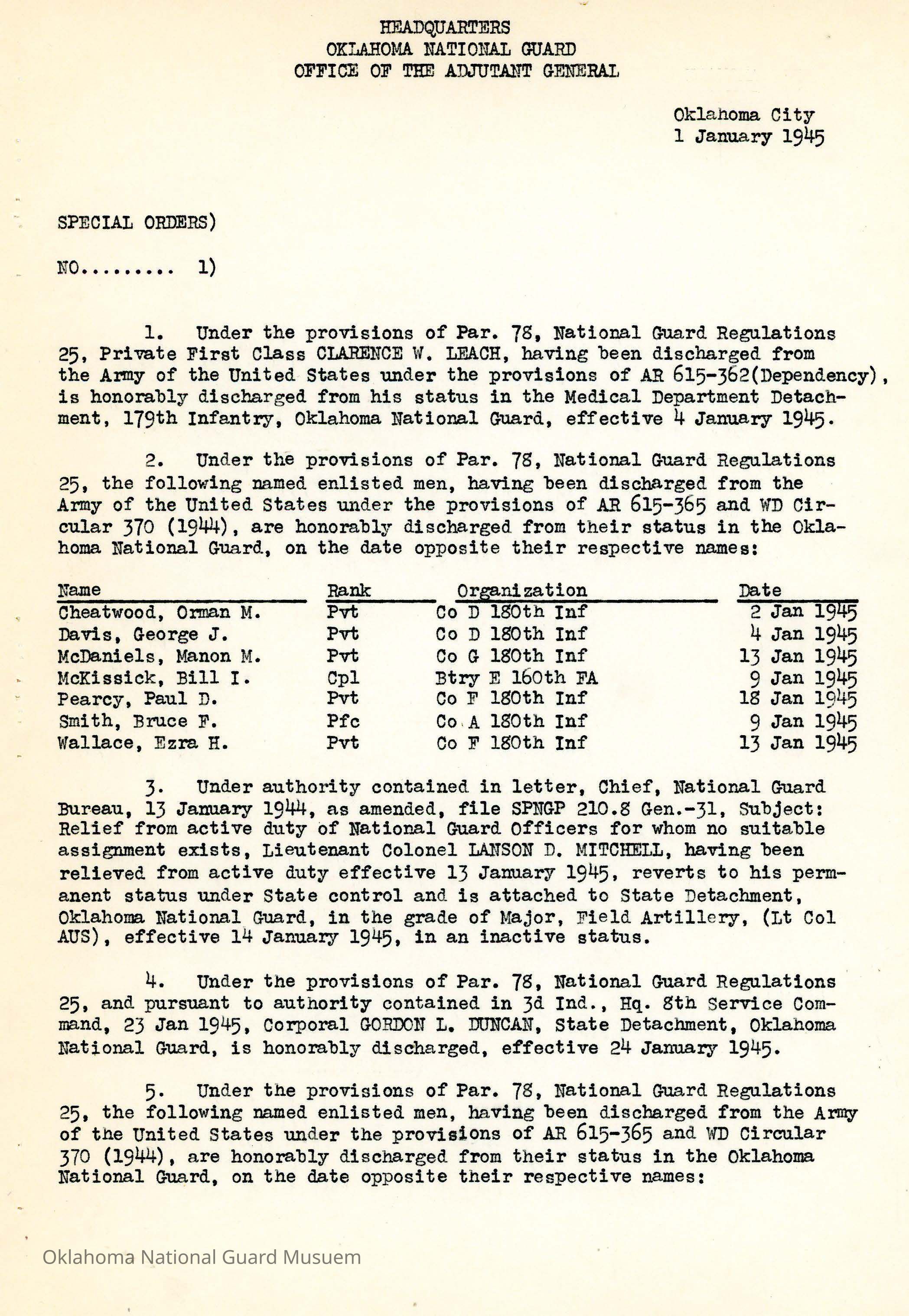 Oklahoma National Guard Special Orders 1945 from the Adjutant General