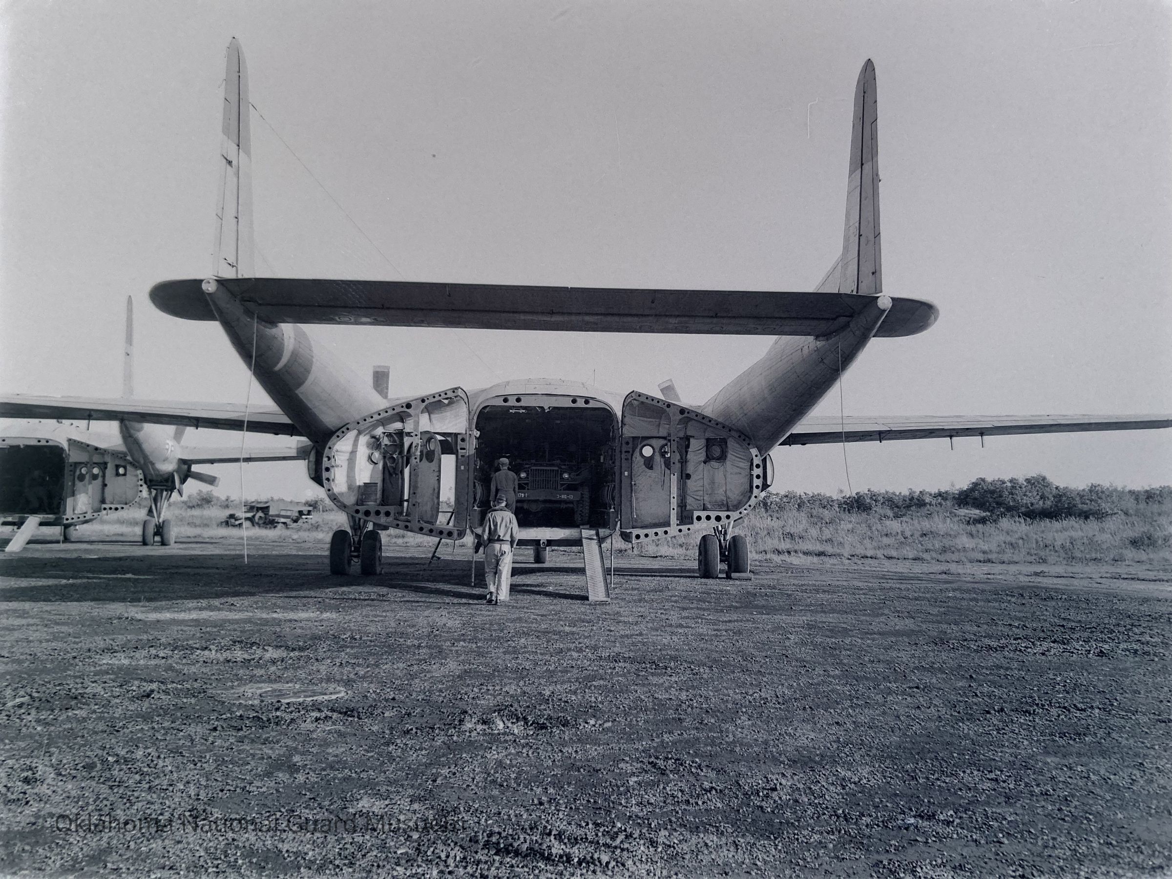Negative of 3/4 Ton Truck loaded into a C-119 cargo plane in Hokkaido, Japan
