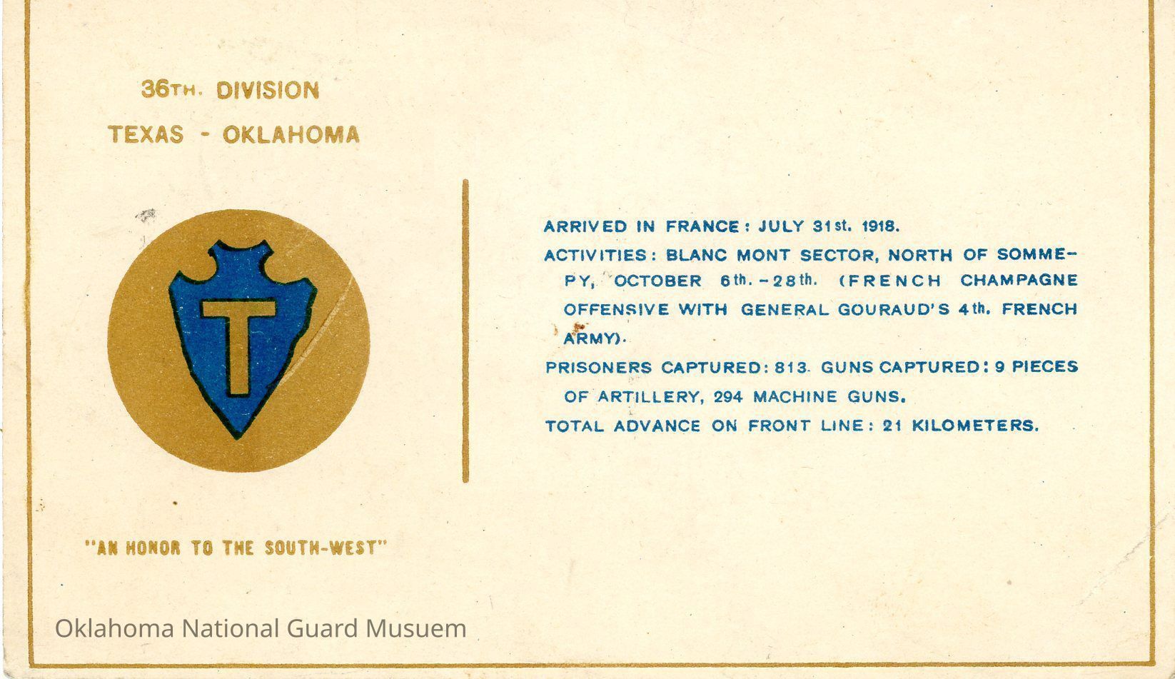 36th Division Postcard