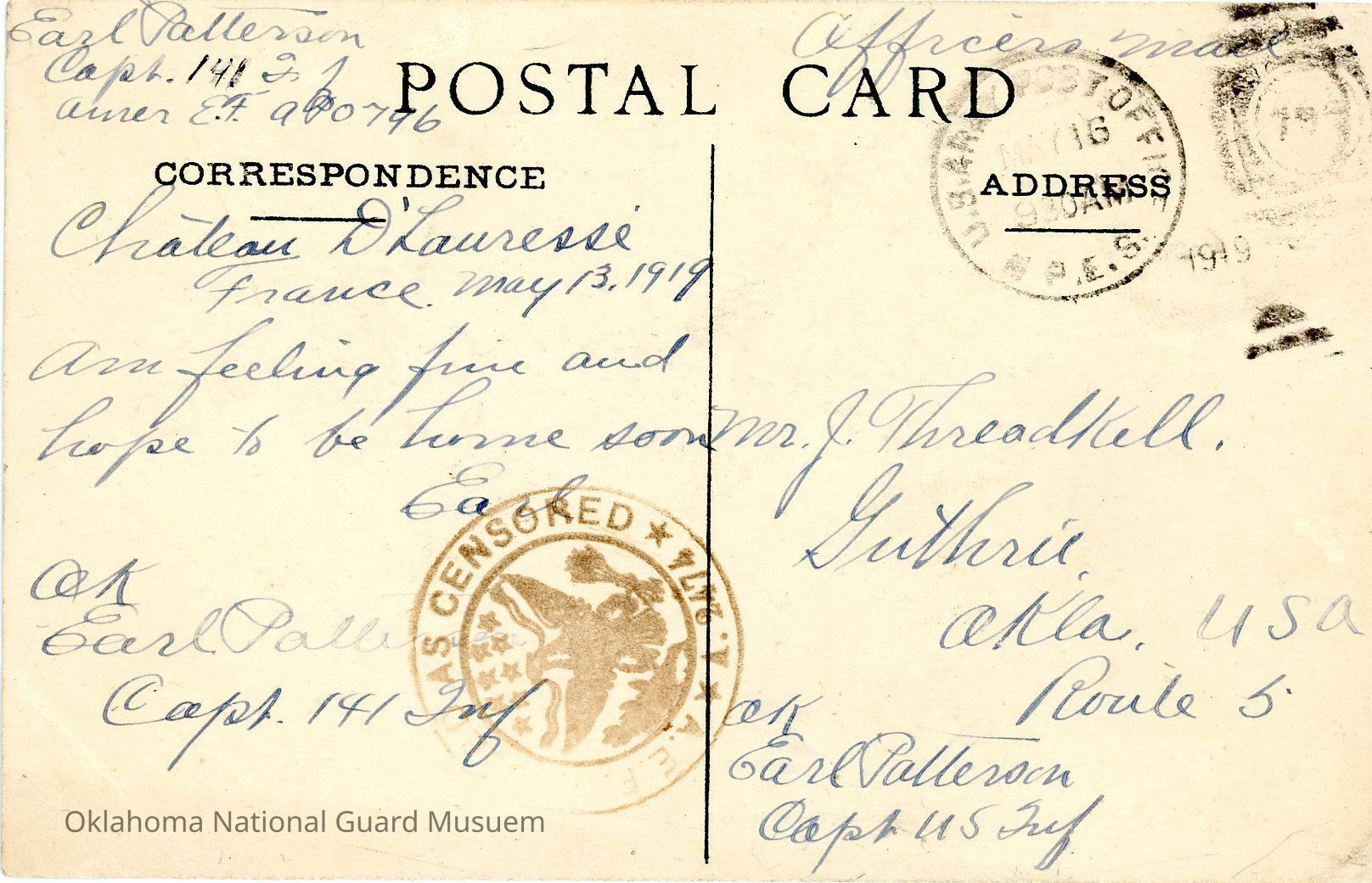 36th Division Postcard 141st Infantry Earl Patterson