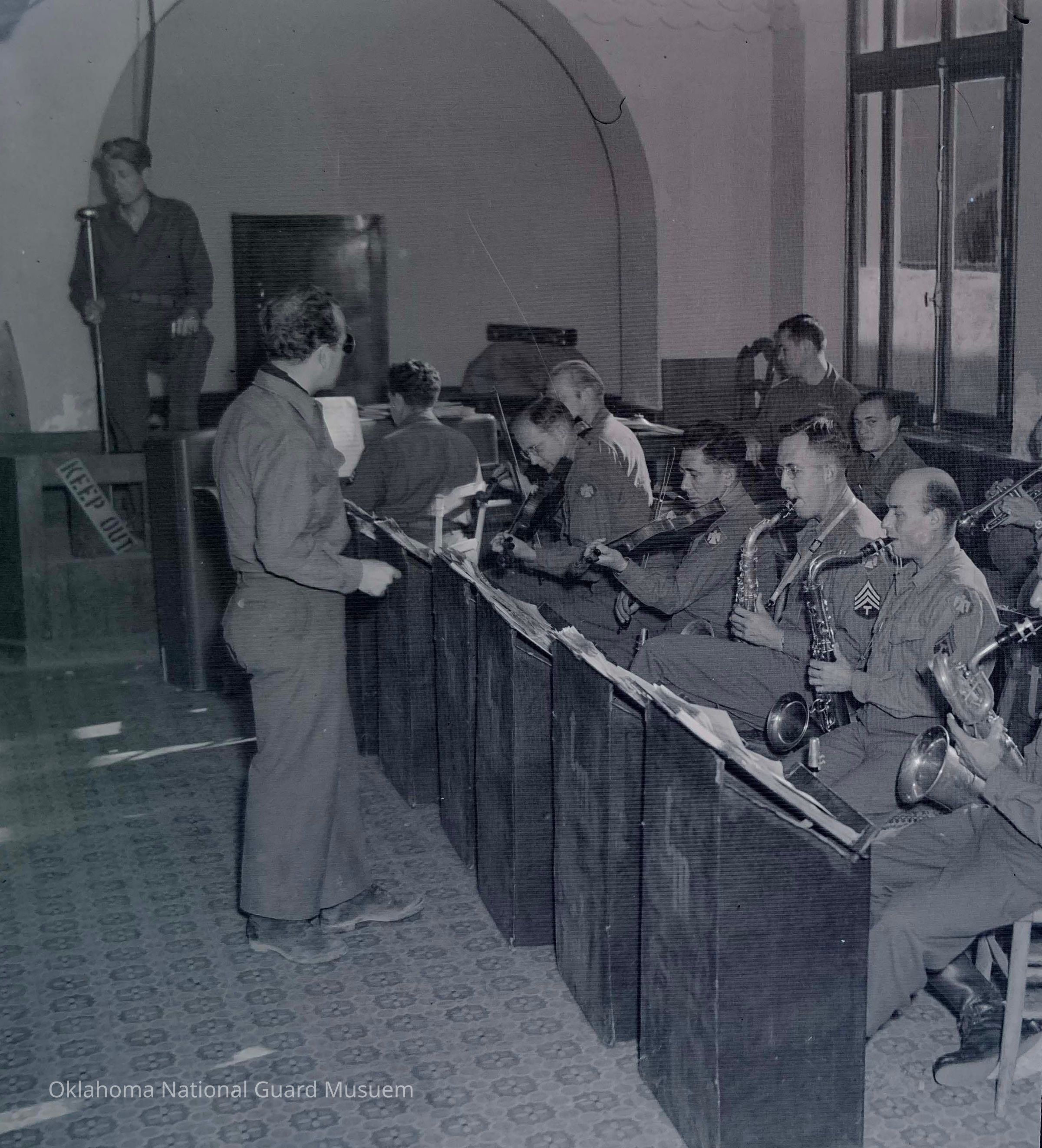 Negative of a military band practice