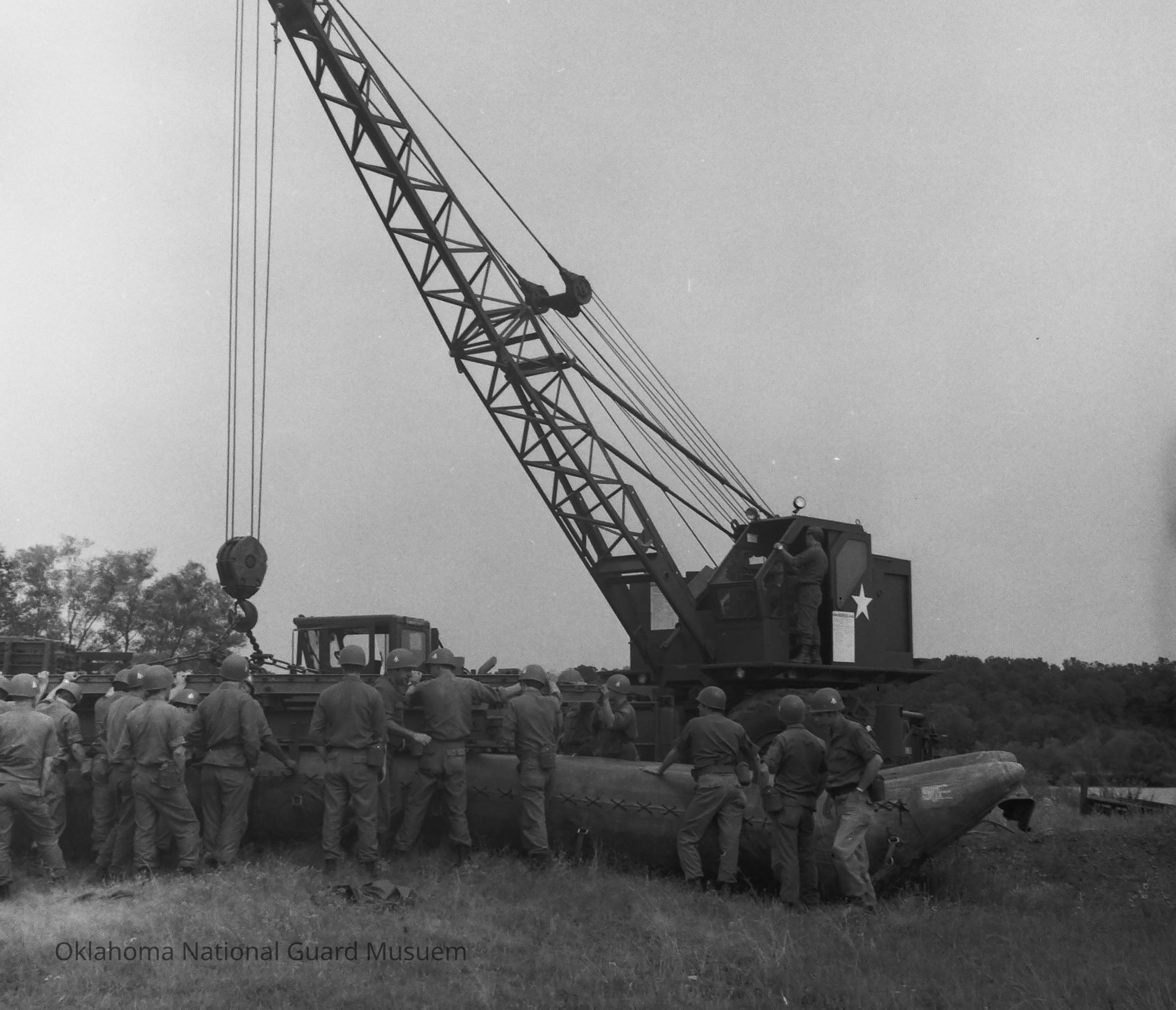 Negative of soldiers training to construct a pontoon bridge. 120th Engineers
