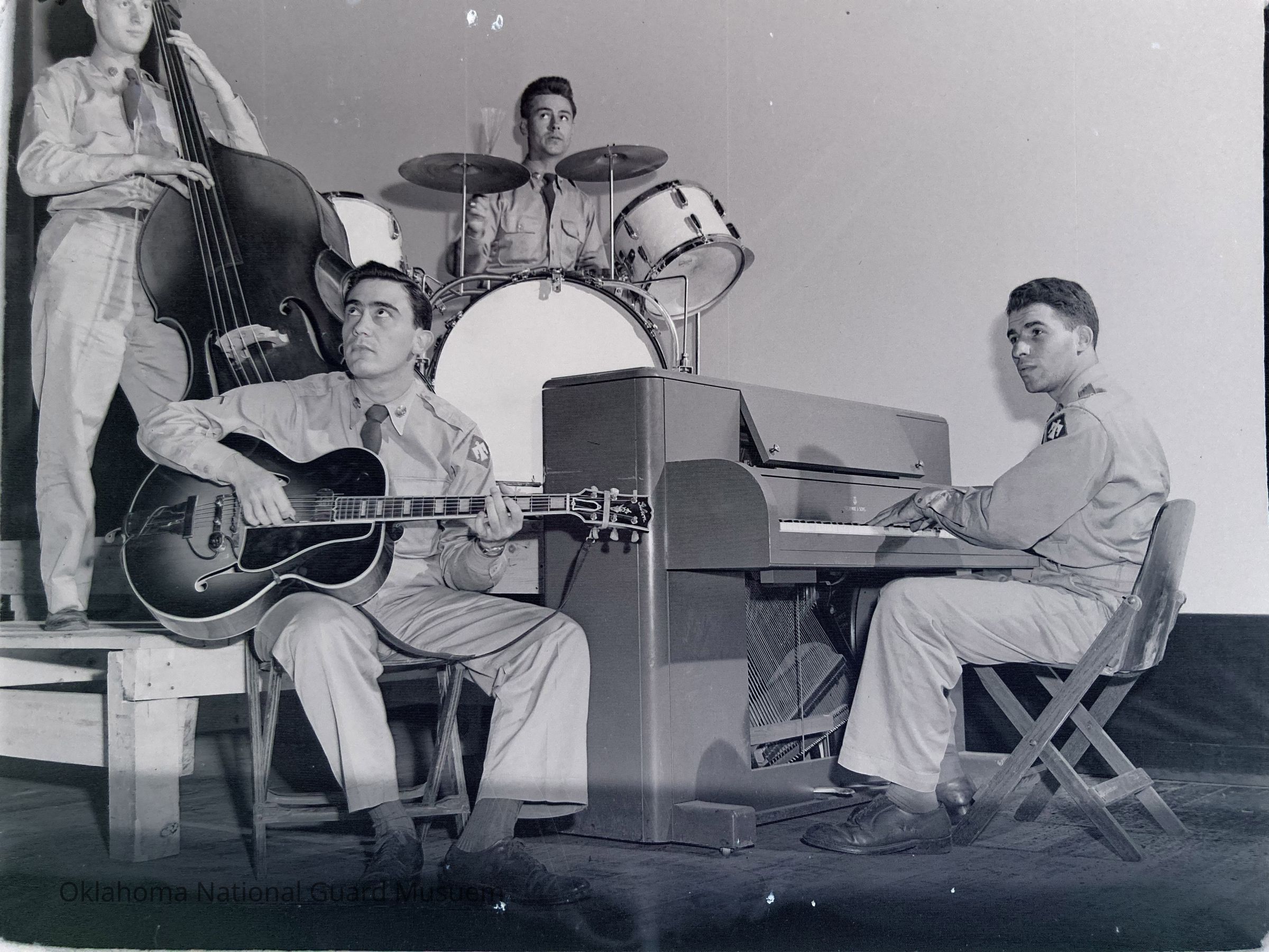 Negative of the 45th Division Combo on stage at Camp Crawford. 45th Infantry Band