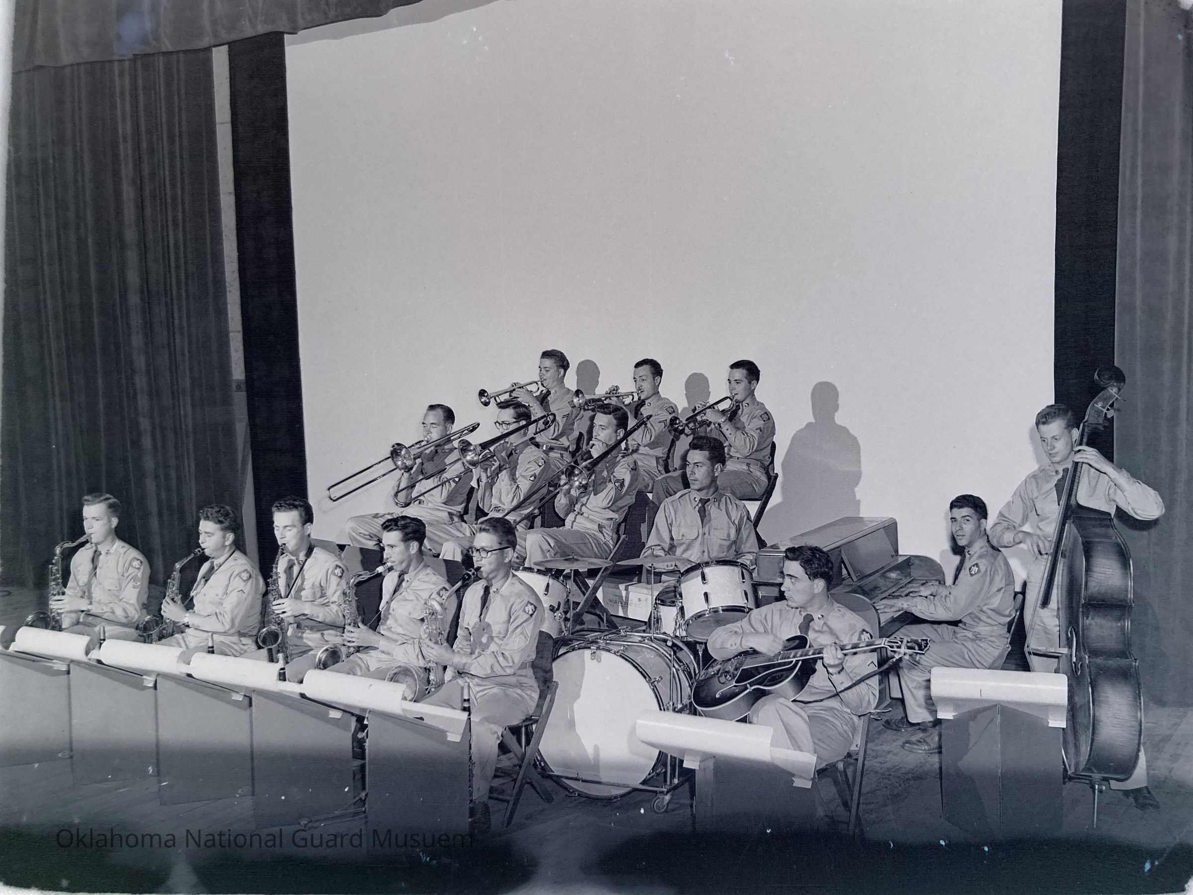 Entertainers, Soldiers, Music, Musicians, Silhouettes, Performances, Stages (Platforms), Military bands, Trumpets, Saxophones, Pianos, Percussion instruments, Guitars, Trombones