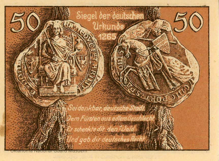 Notgeld refers to money issued by an institution in a time of economic or political crisis. The issuing institution is usually one without official sanction from the central government. This occurs usually when sufficient state-produced money is not available from the central bank. Most notably, notgeld generally refers to money produced in Germany and Austria during World War I and the Interbellum. Issuing institutions could be a town's savings banks, municipality and private or state-owned firms. Nearly all issues contained an expiry date, after which time they were invalid. Issues without dates ordinarily had an expiry announced in a newspaper or at the place of issuance.Collection