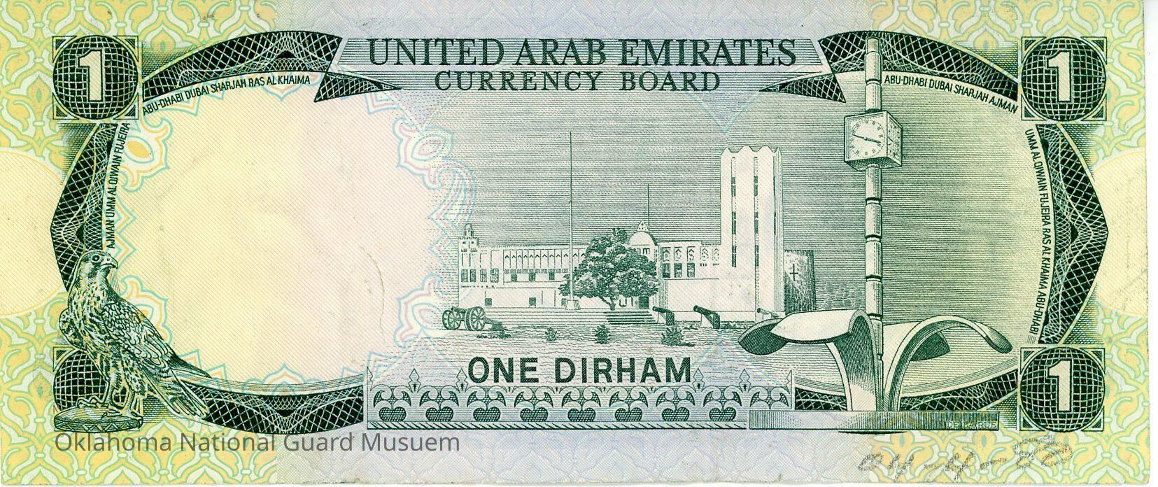 Old UAE Emblem (Dhow, camels, palm tree, oil derrick)Transcription
