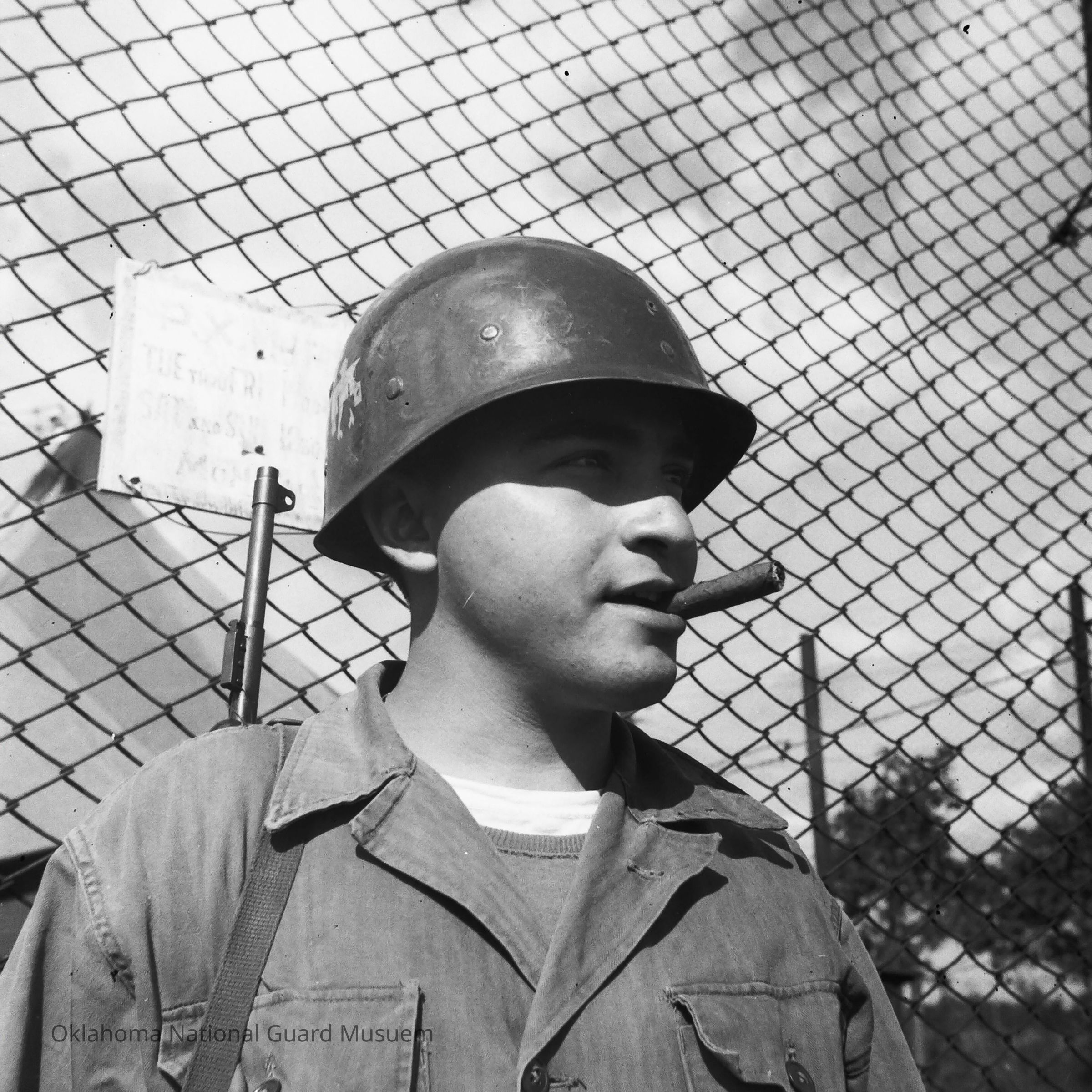 Soldiers, Portrait photographs, Fences, Cigars, Rifles, Tobacco smoking